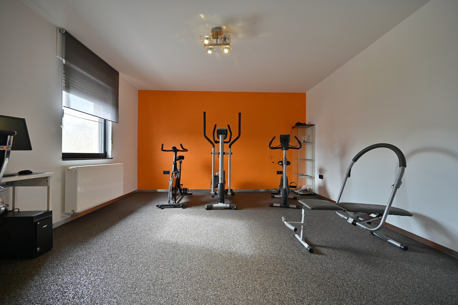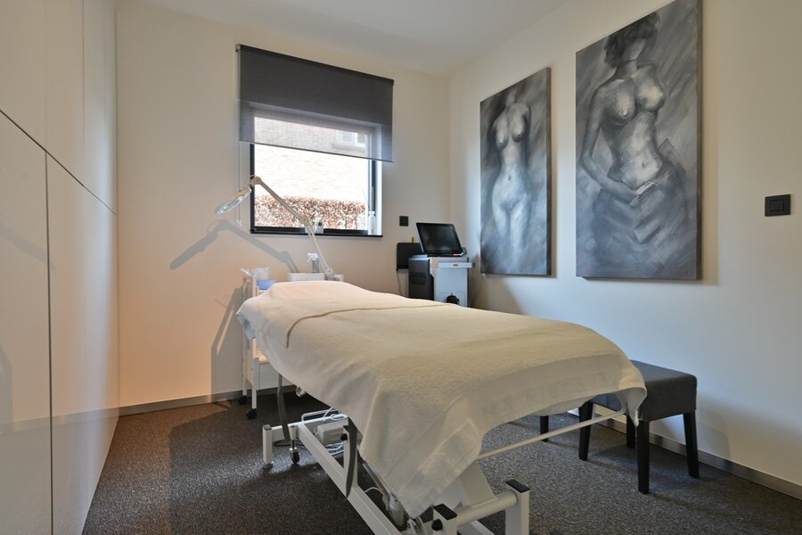 - Ingerichte bergruimte (10,5 m²) met hoogglans inbouwkasten (momenteel ook gebruikt als praktijkruimte).