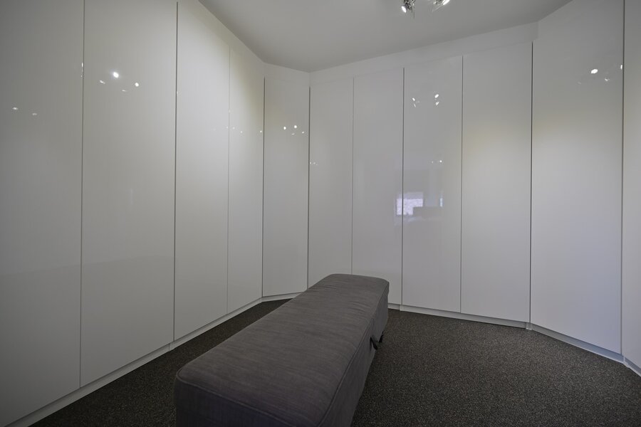 - Ruime dressing (14,30 m²) met hoogglans inbouwkasten (2015), aansluitend op de masterbedroom (24,75 m²).