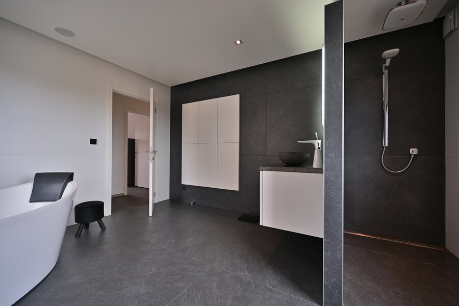 - Ruime badkamer (19,17 m²), vernieuwd in 2015 en voorzien van alle comfort: inloopdouche, ligbad en drie wastafels.