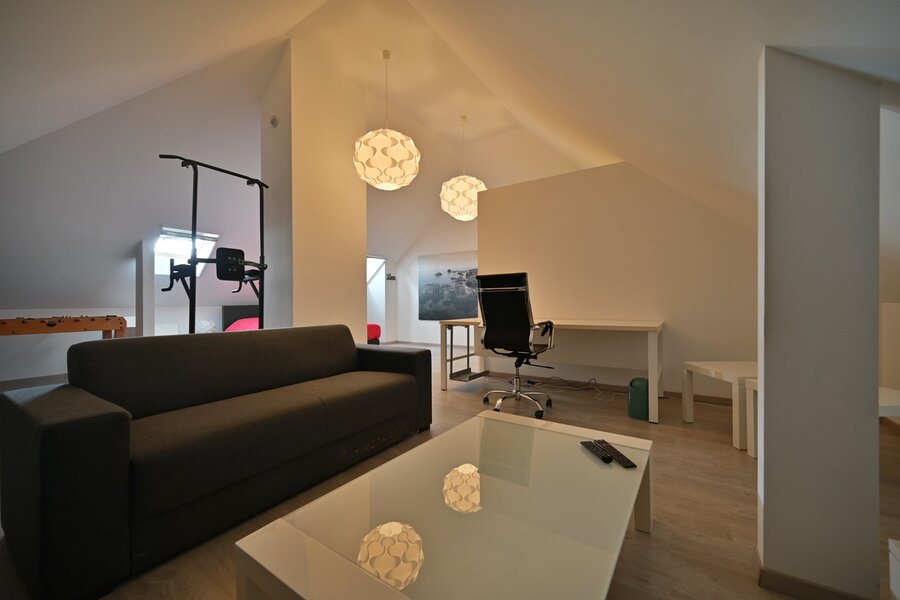 - Ruime zolderverdieping met leef- en slaapruimte.