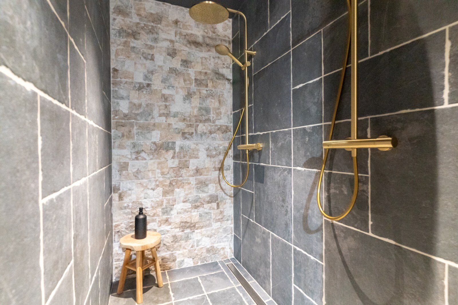 - Troisième annexe du corps de ferme : Appartement de +/- 75m² actuellement loué avec un accès séparé, composé d'un séjour, d'une cuisine équipée, d'une salle de bains et de deux douches.