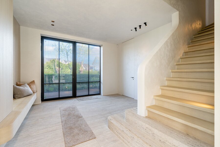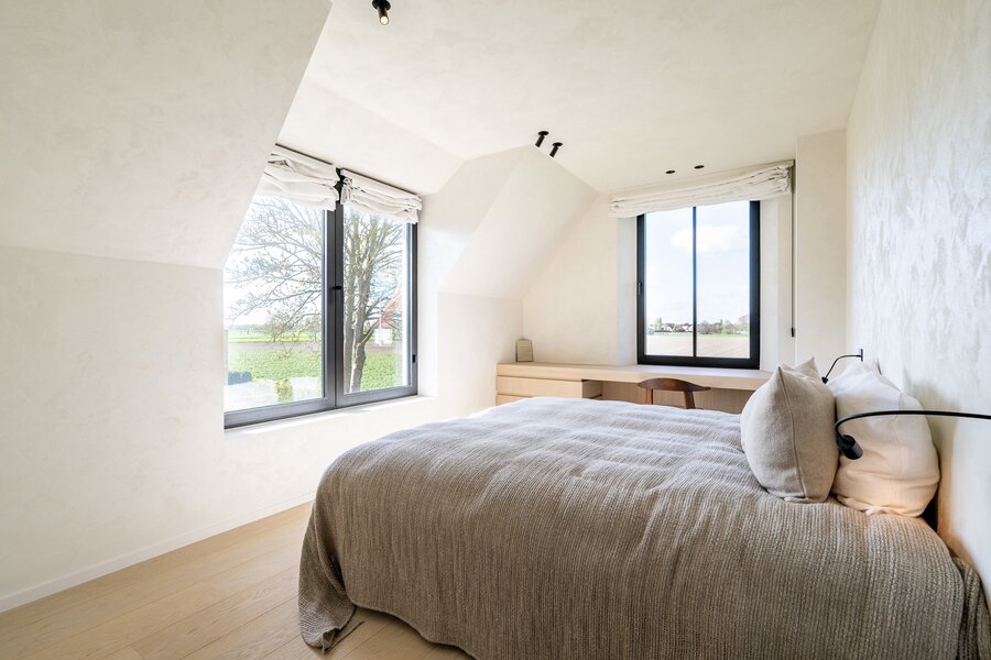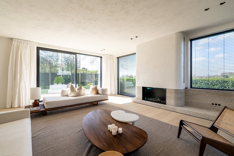 Villa neuve de prestige comprenant six chambres et offrant une vue dégagée sur les champs environnants, située au calme à proximité du Zoute et du centre de Knokke.