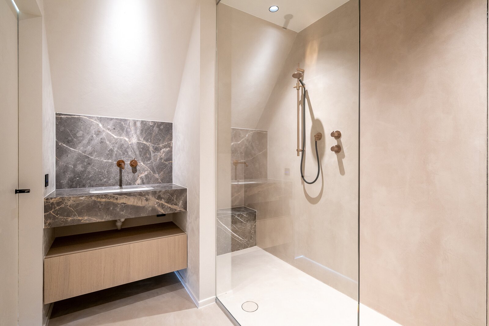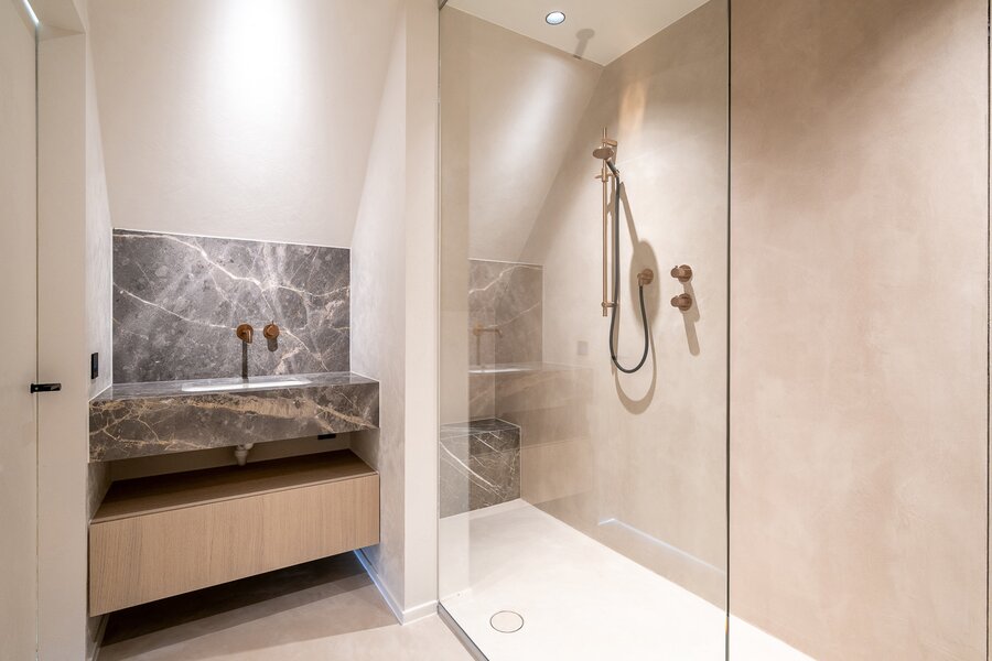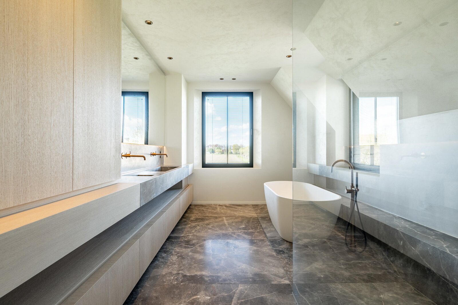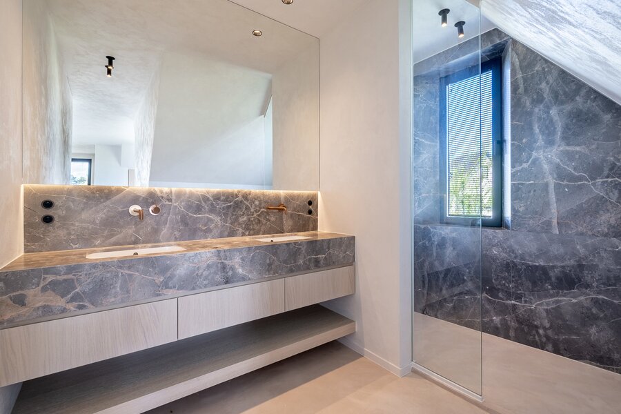 Chambre principale avec dressing et salle de bains attenante. Deuxième chambre, également avec dressing et salle de bains privative. Troisième et quatrième chambres, chacune avec sa propre salle de douche. Pièce supplémentaire aménagée en bureau.