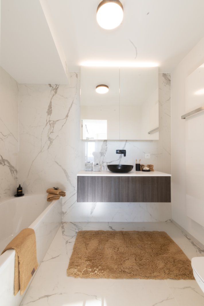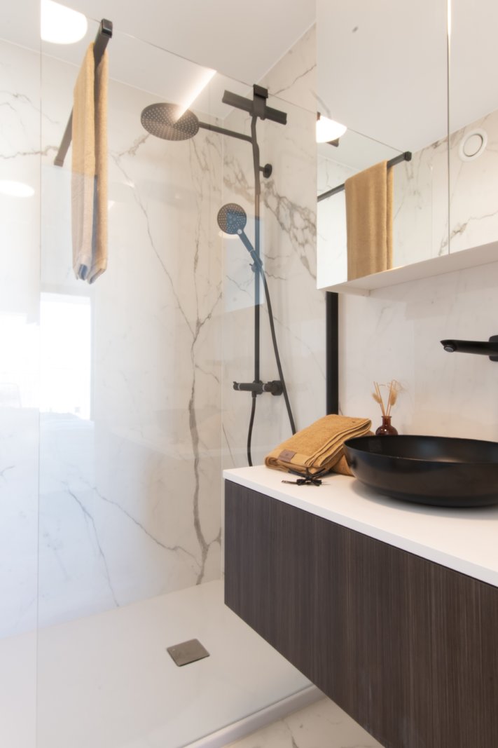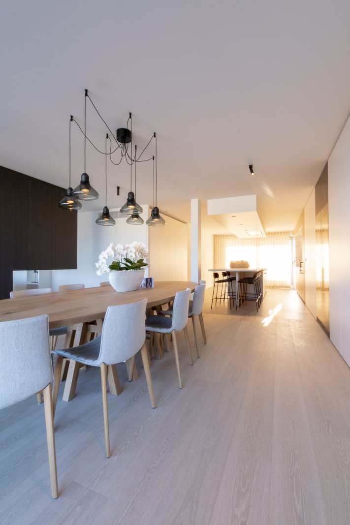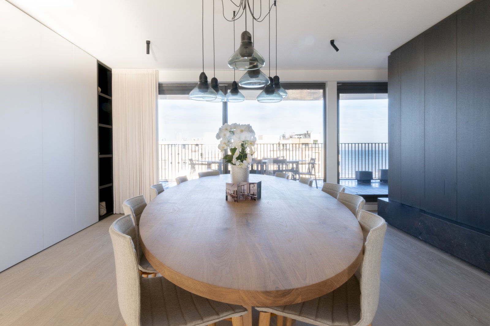 De hoogwaardige afwerking van deze penthouse is tot in de kleinste details verfijnd. De stijlvolle keuken combineert fineer en een gelakte afwerking tot een perfect geheel en is uitgerust met hoogwaardige Miele-toestellen, een werkblad in natuursteen en een ingebouwde wijnkoeler. Aansluitend bevindt zich de royale leefruimte van 71 m², waar de ingebouwde gashaard met natuurstenen sokkel een warme en elegante sfeer creëert. Kortom, een exclusieve penthouse waar luxe, comfort en een high-end design samenkomen.