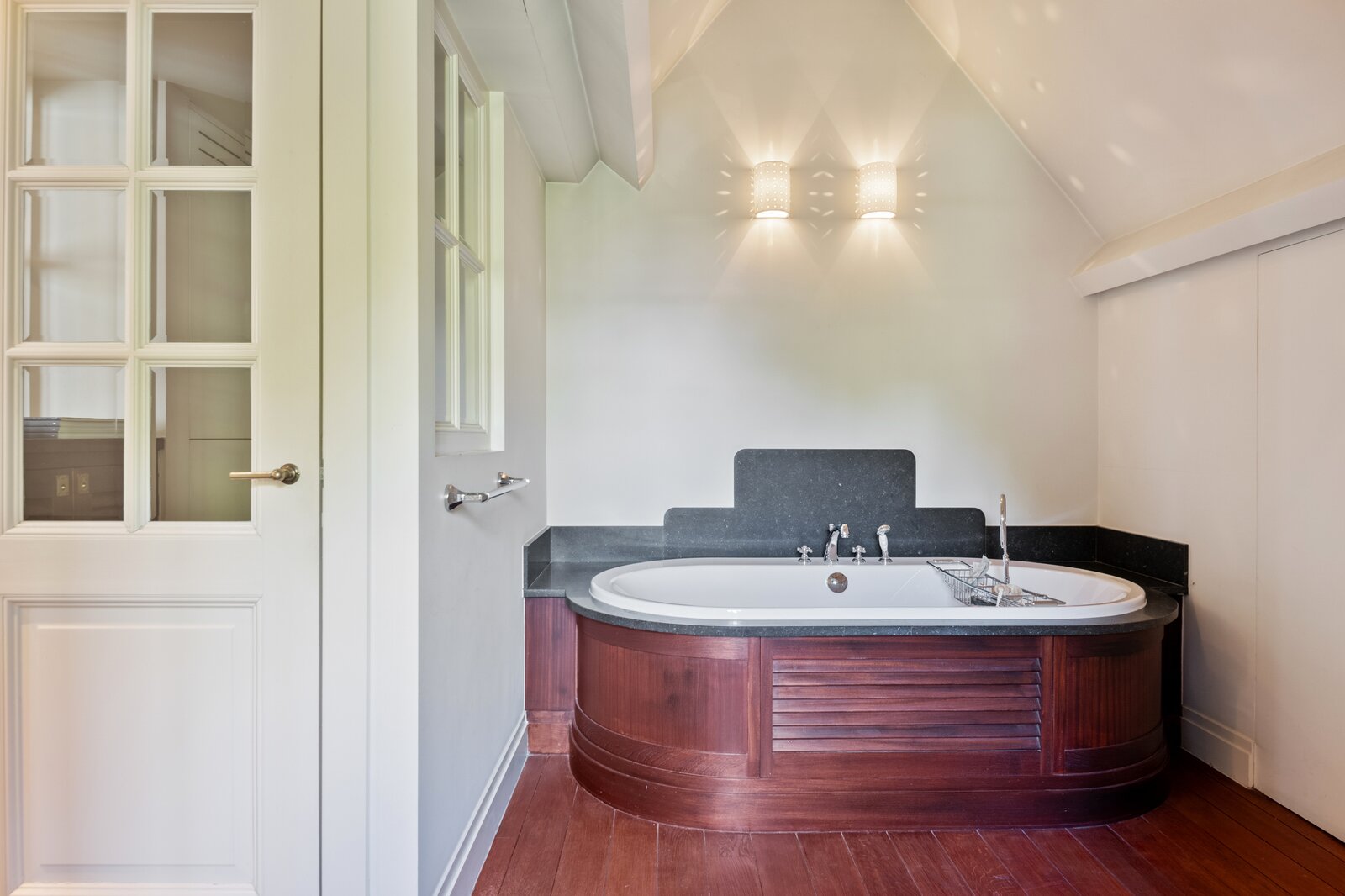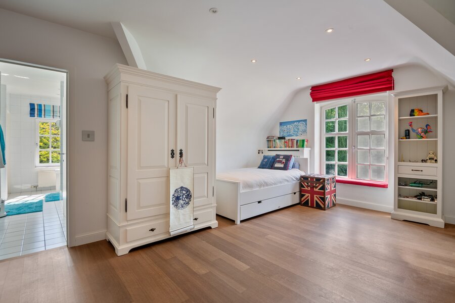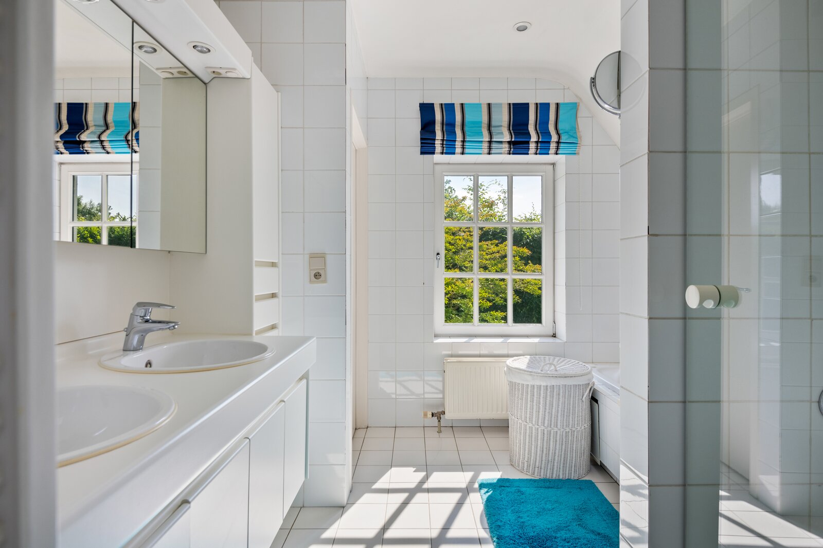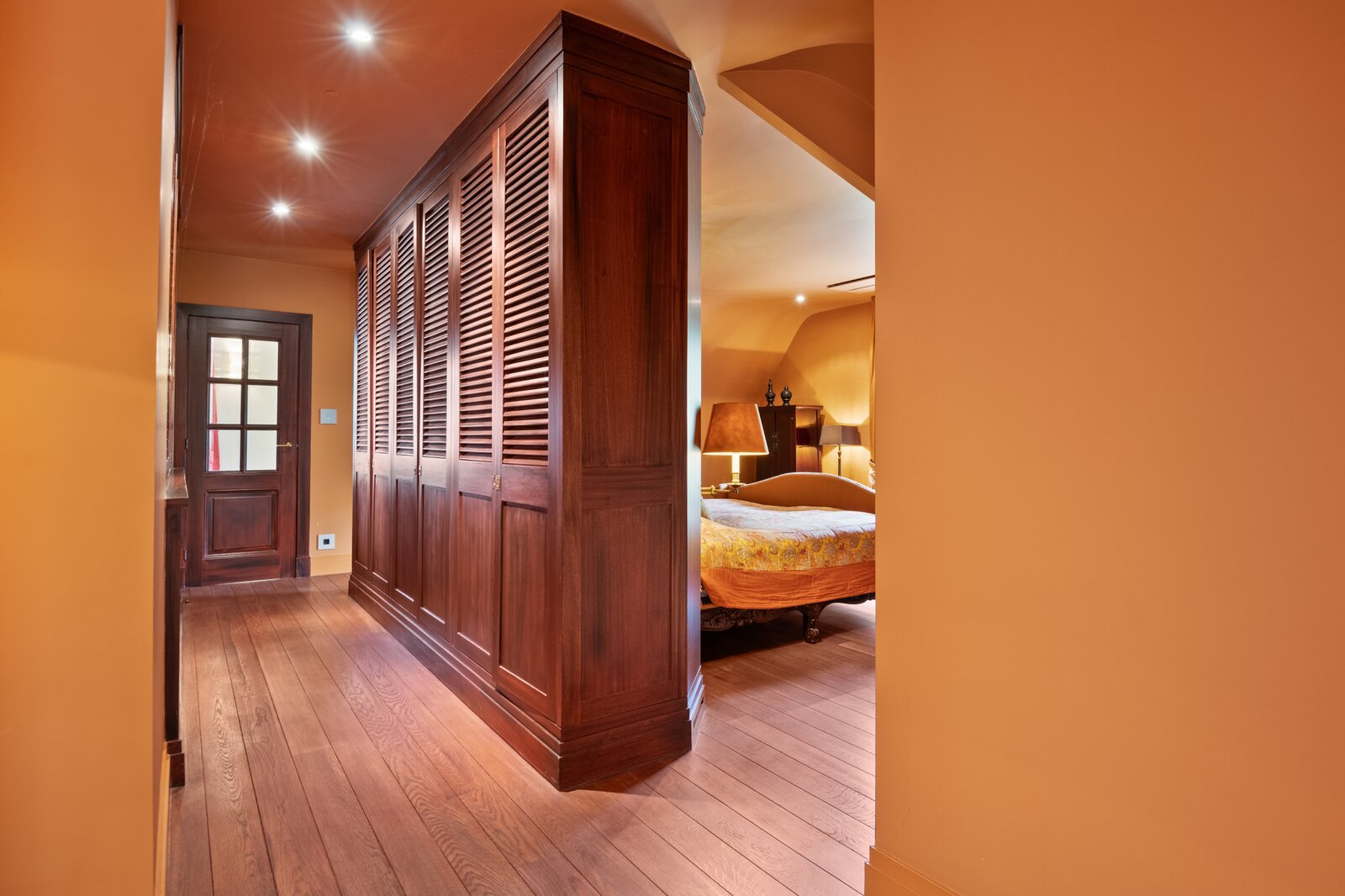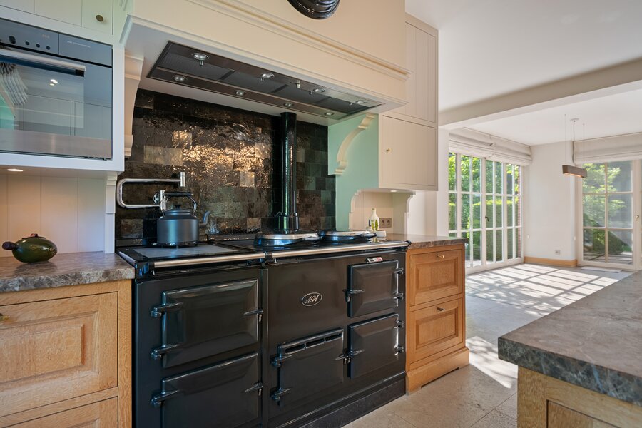 De keuken is een echte eyecatcher, uitgerust met oa een authentiek AGA-fornuis en Amerikaanse koelkast en sluit aan een ontbijtruimte. Over het hele gelijkvloers zorgen elektrische zonnewering, elektrisch bedienbare gordijnen en domotica verlichting voor comfort en gebruiksgemak op maat van elk moment van de dag.