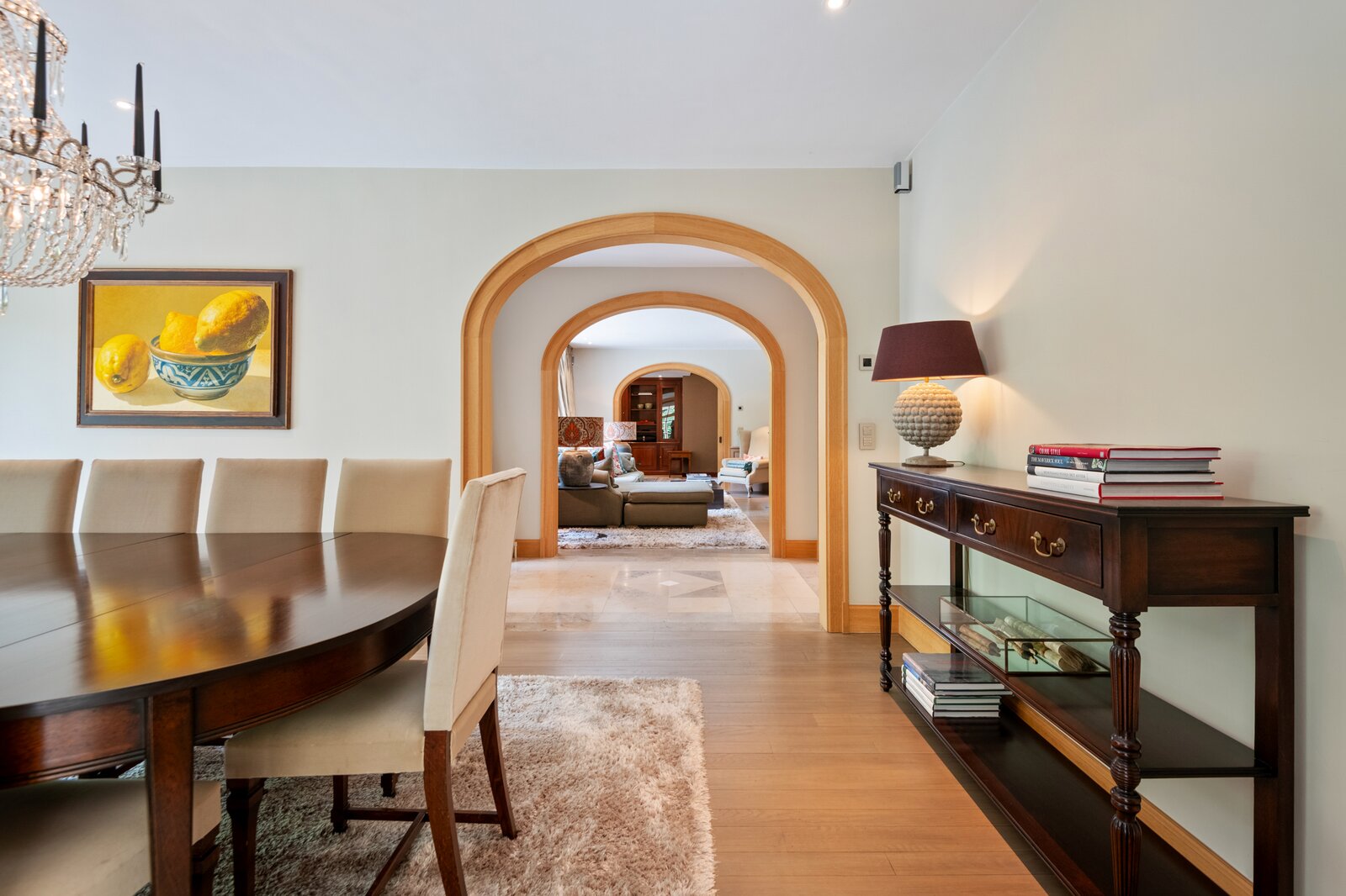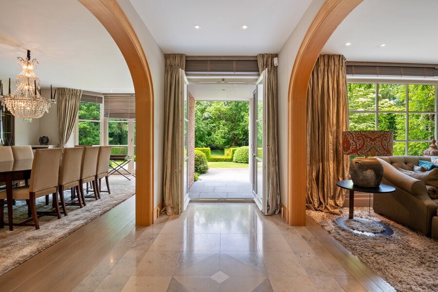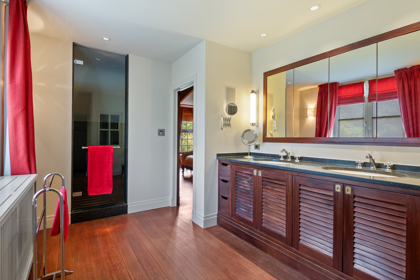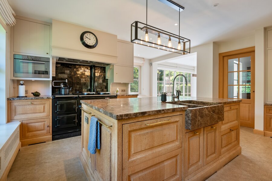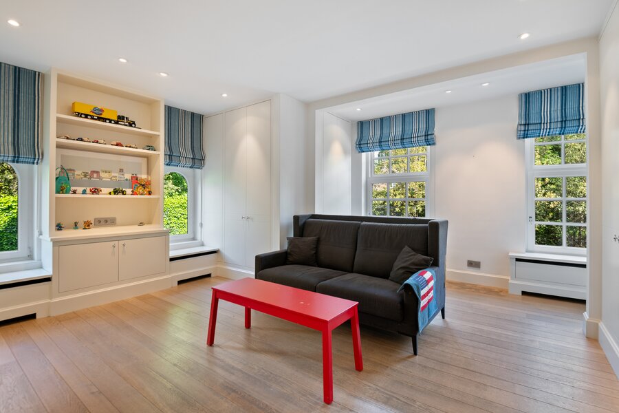 De keuken is een echte eyecatcher, uitgerust met oa een authentiek AGA-fornuis en Amerikaanse koelkast en sluit aan een ontbijtruimte. Over het hele gelijkvloers zorgen elektrische zonnewering, elektrisch bedienbare gordijnen en domotica verlichting voor comfort en gebruiksgemak op maat van elk moment van de dag.