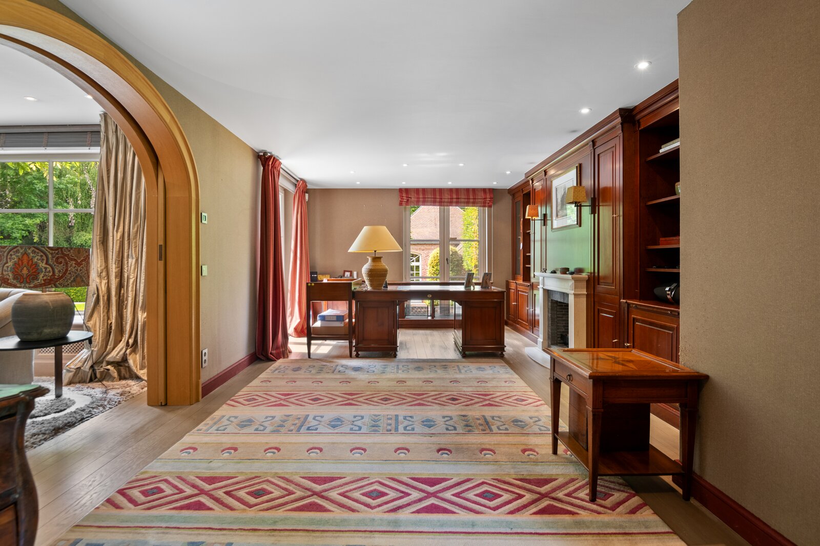 Bij het betreden van de woning voel je meteen de warme sfeer. De volledige gelijkvloerse verdieping werd in 2010 vernieuwd (ook Vlassak-Verhulst) en straalt klasse en kwaliteit uit. In de ruime en lichtrijke leefruimte trekt de klassieke openhaard meteen de aandacht. Aangrenzend bevindt zich een aparte bureauruimte, waar een moderne gashaard zorgt voor extra gezelligheid tijdens het werk of lezen.