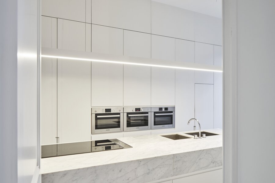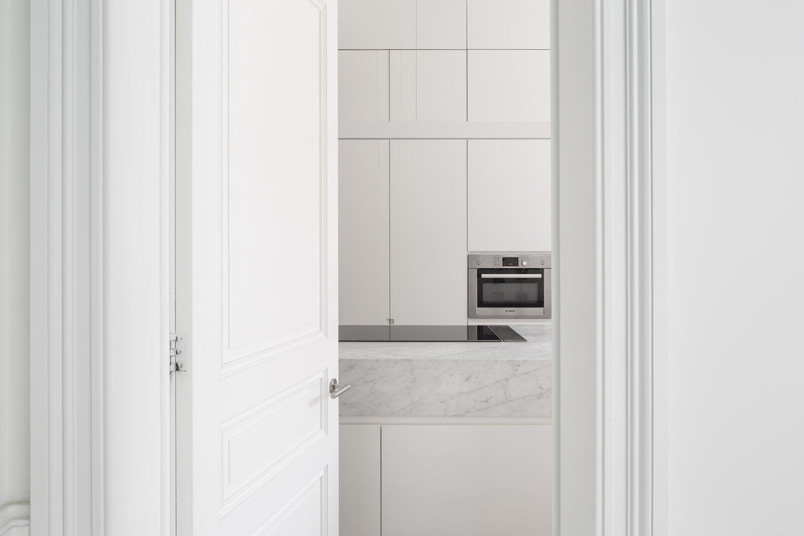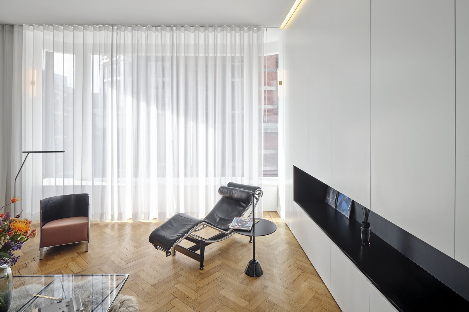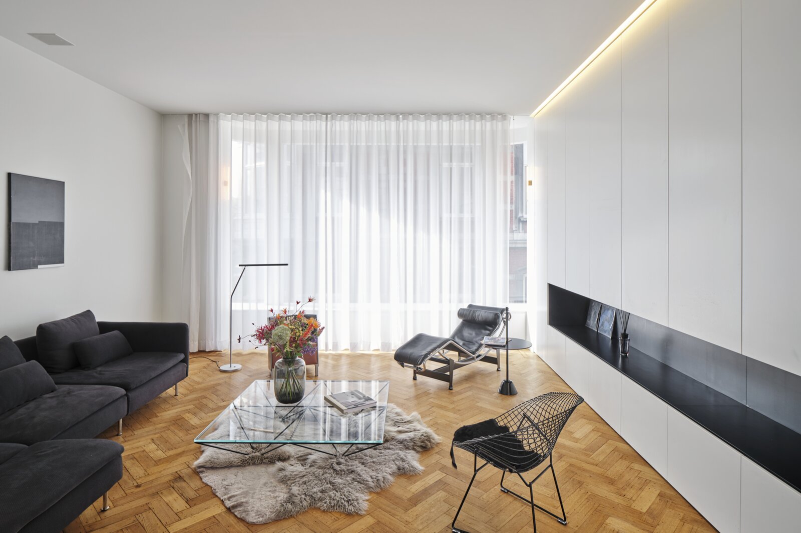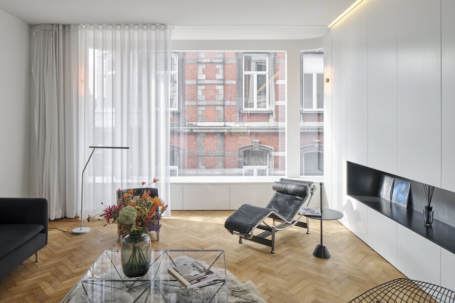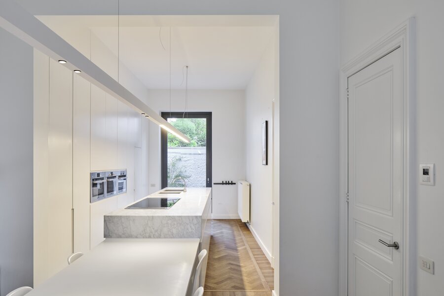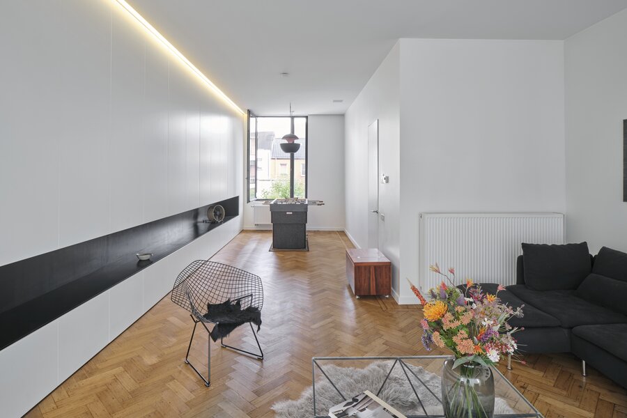 Derrière une façade classique, au cœur vibrant de Gand, se cache un bijou d’architecture : une maison bourgeoise du XIXᵉ siècle transformée par l’architecte Joke De Sutter en une habitation contemporaine d’un raffinement rare. Deux volumes noirs et une grande baie vitrée apportent une touche audacieuse et moderne, sans effacer le caractère historique du lieu. À l’intérieur, une composition épurée, du mobilier sur mesure et un jeu subtil de lumière créent une atmosphère exceptionnelle. Marbre de Carrare, parquet en chevrons avec marqueterie, cuisine haut de gamme, jardin de ville pensé comme un espace extérieur intime. À l’étage, un séjour ouvert avec coin bureau ; au-dessus, trois chambres d’enfants avec salle de bains. La suite parentale, avec dressing, salle de bains et terrasse, occupe tout le dernier niveau. Chaque espace a été pensé dans le moindre détail. L’approche de Joke De Sutter allie respect du passé et modernité affirmée. Ici, l’architecture devient une expérience sensible et durable.