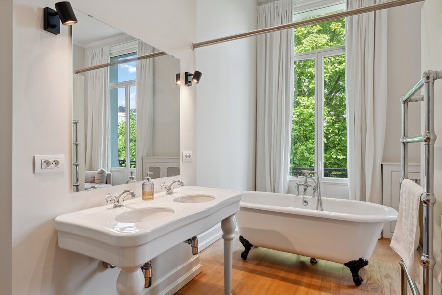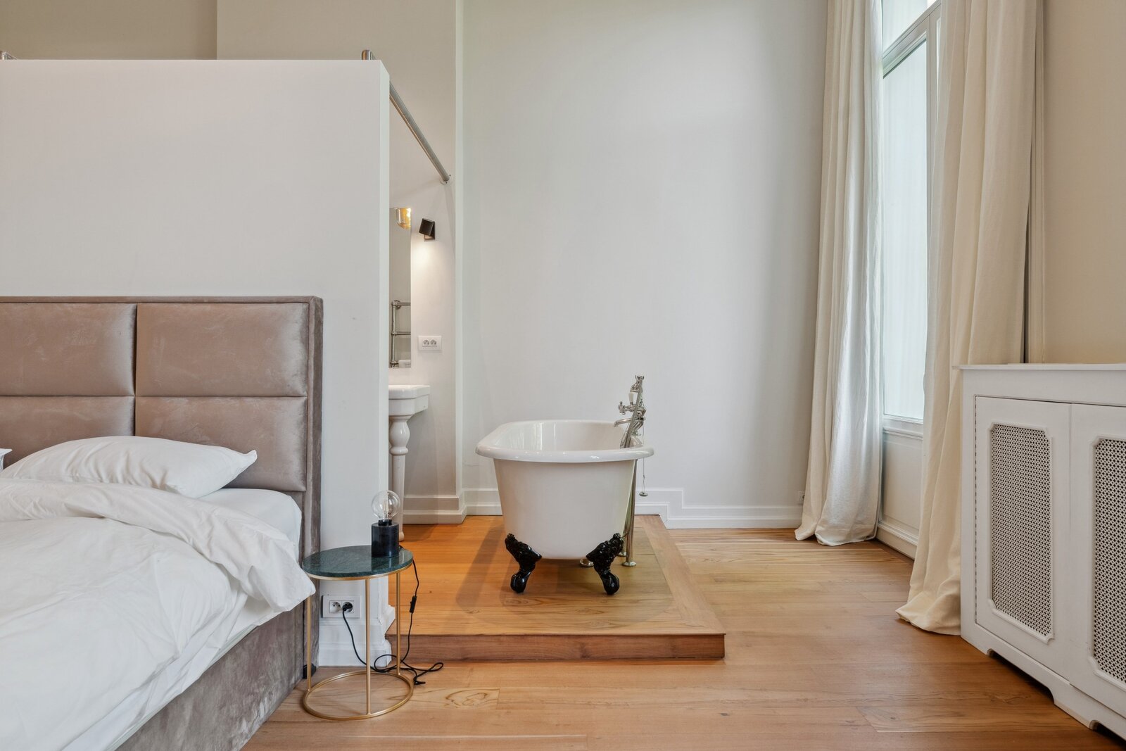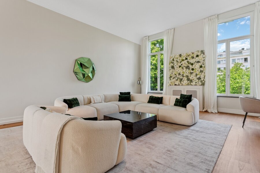 Dans un hôtel particulier imposant et plein de caractère, situé en plein cœur de la ville, se trouve au deuxième étage cet appartement élégant et exceptionnellement spacieux. Avec son agencement unique, ses finitions haut de gamme et sa généreuse surface habitable, ce bien offre une combinaison rare d’élégance et de confort. À l’arrière, vous profitez d’un cadre verdoyant et paisible, une véritable oasis de tranquillité au milieu de l’animation urbaine.