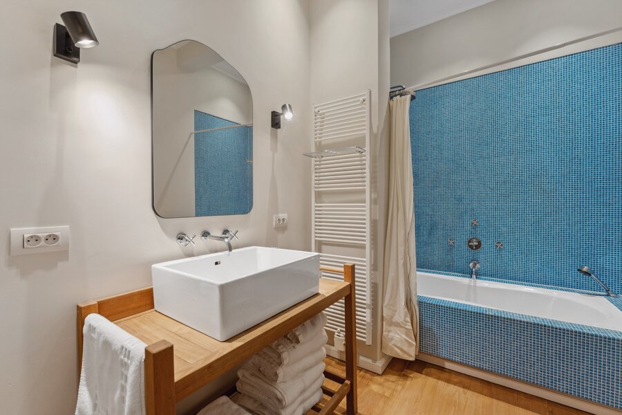 À l’arrière, côté calme, se trouve une magnifique terrasse avec vue, idéale pour se détendre en toute intimité. La chambre parentale spacieuse est un véritable havre de paix, avec salle de bains luxueuse comprenant une douche à l’italienne, une baignoire indépendante et une double vasque. La deuxième chambre dispose également de sa propre salle d’eau, idéale pour les invités ou colocataires.