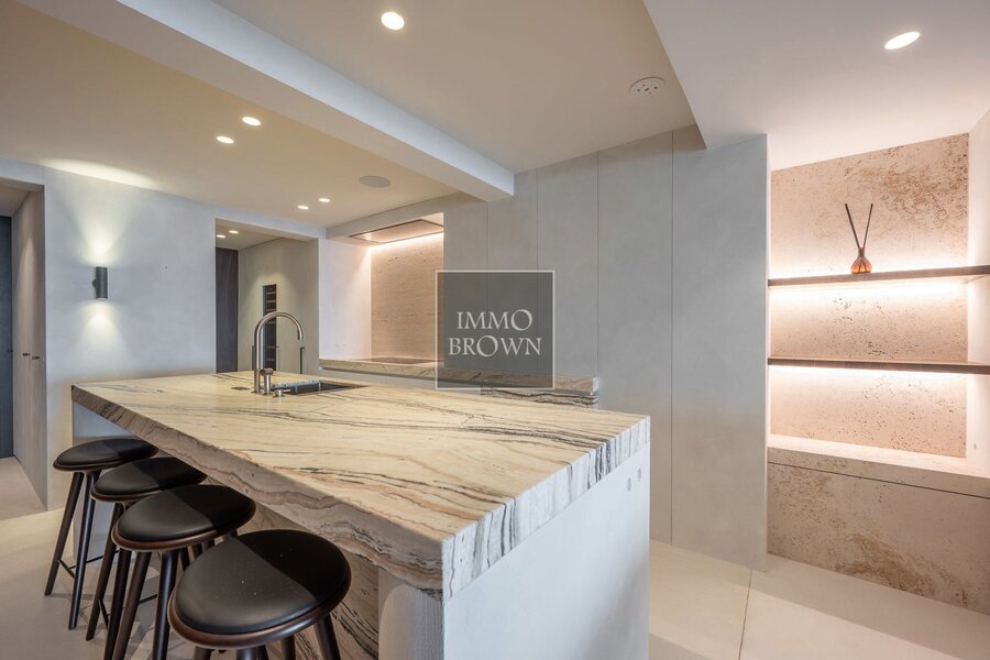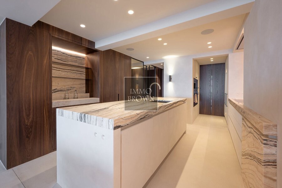 Le bien s’étend sur deux niveaux et offre une superficie habitable exceptionnelle d’environ 194 m², ce qui est particulièrement rare pour une propriété en première ligne. La rénovation a été réalisée avec des matériaux nobles et intemporels, dans un souci constant