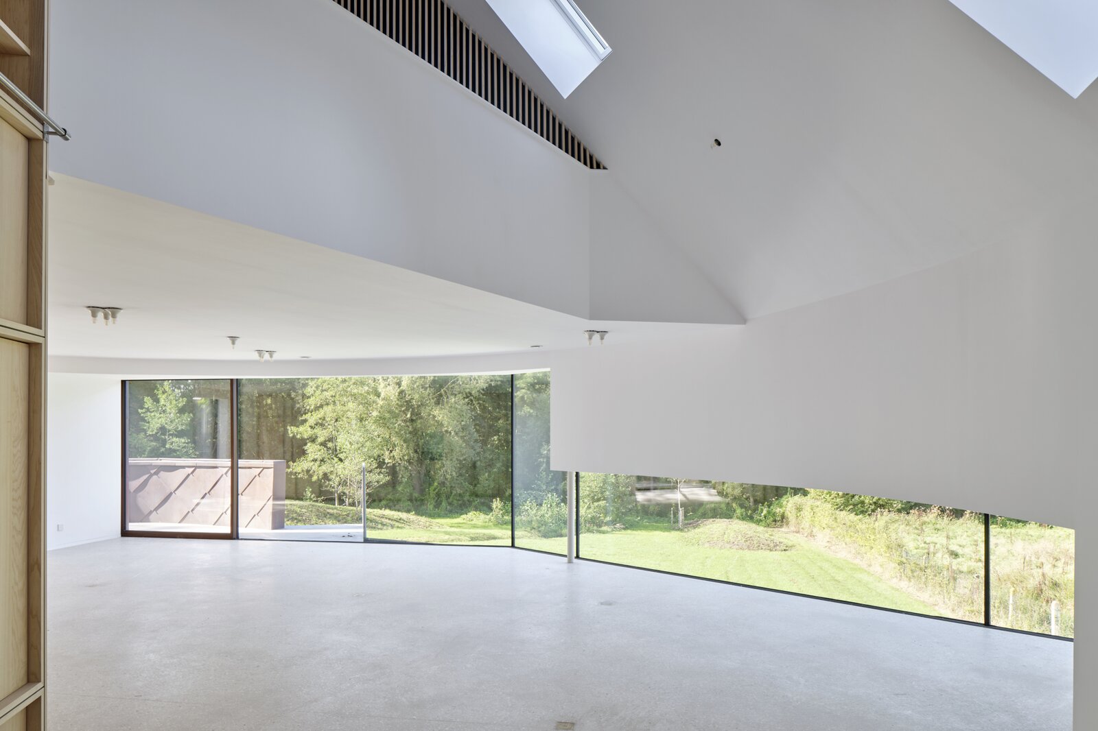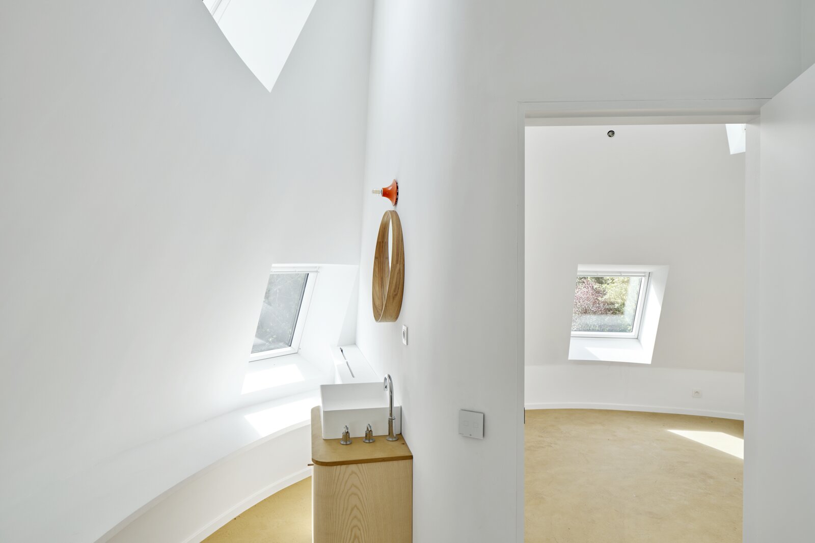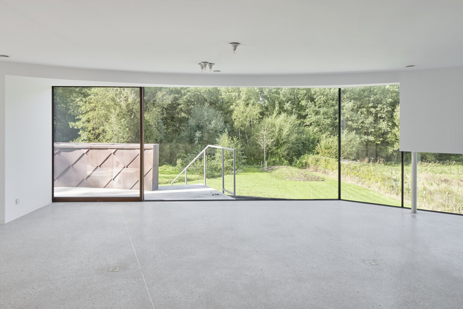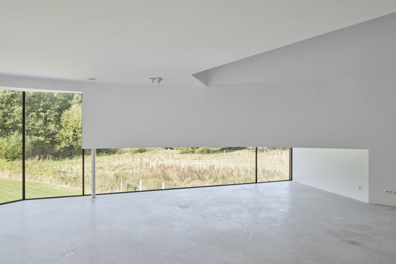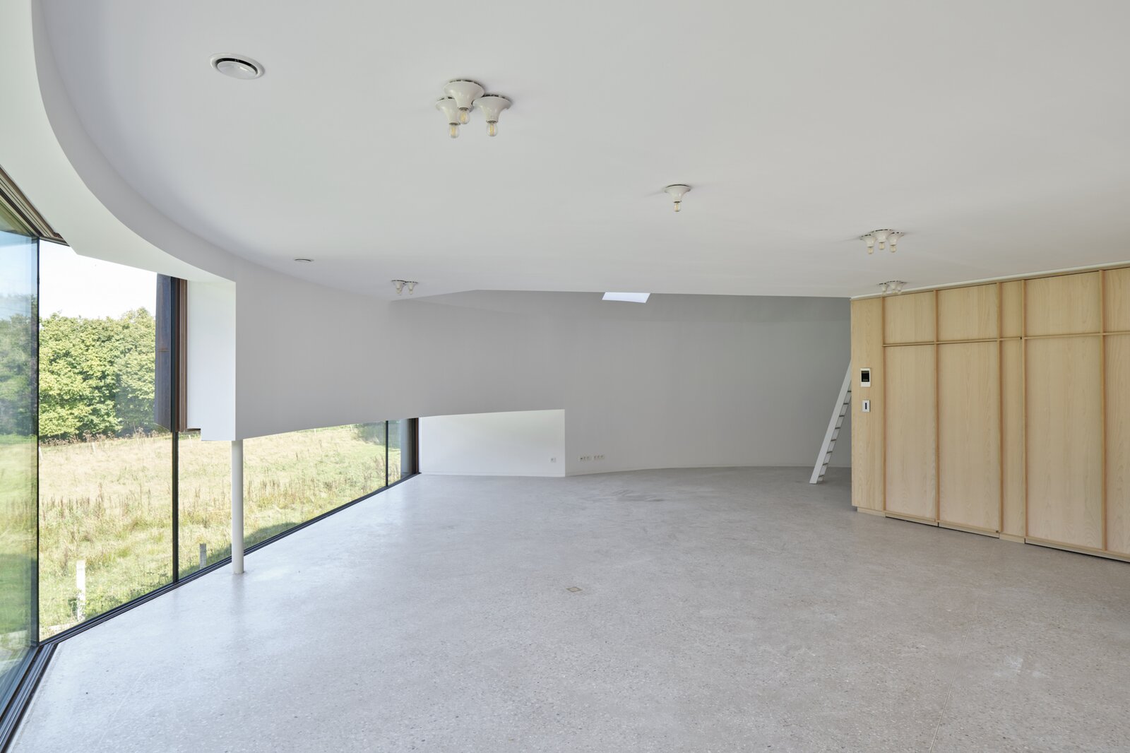 Dans un coin paisible de Dilbeek, en lisière d’une zone naturelle, se niche cette maison neuve de 2023 signée Lezze Architecten. Une sculpture habitable où lumière, espace et silence se rencontrent. Volumes courbes, baies vitrées cintrées et matériaux naturels composent une atmosphère rare. Avec env. 380 m² habitables, quatre chambres, trois salles de bains et une mezzanine centrale, elle marie volume et sérénité. Les larges fenêtres connectent intérieur et nature, laissant entrer la lumière et le rythme des saisons. L’intérieur a été entièrement réalisé sur mesure par Van Overstraeten, renommé pour son savoir-faire. Chaque élément — cuisine, escaliers, mobilier — s’intègre parfaitement à l’architecture. Performante énergétiquement (niveau E27), pompe à chaleur, isolation de haut niveau. Jardin naturel, accès direct à une zone boisée. Plus qu’un habitat, une véritable expérience architecturale.
