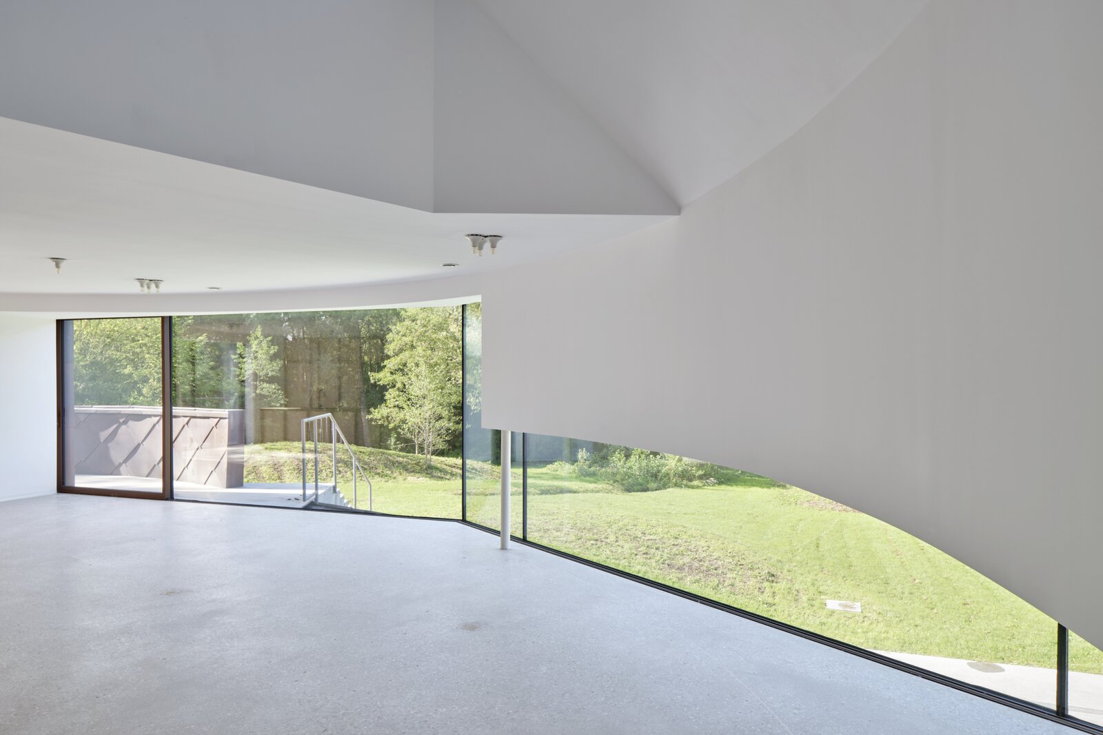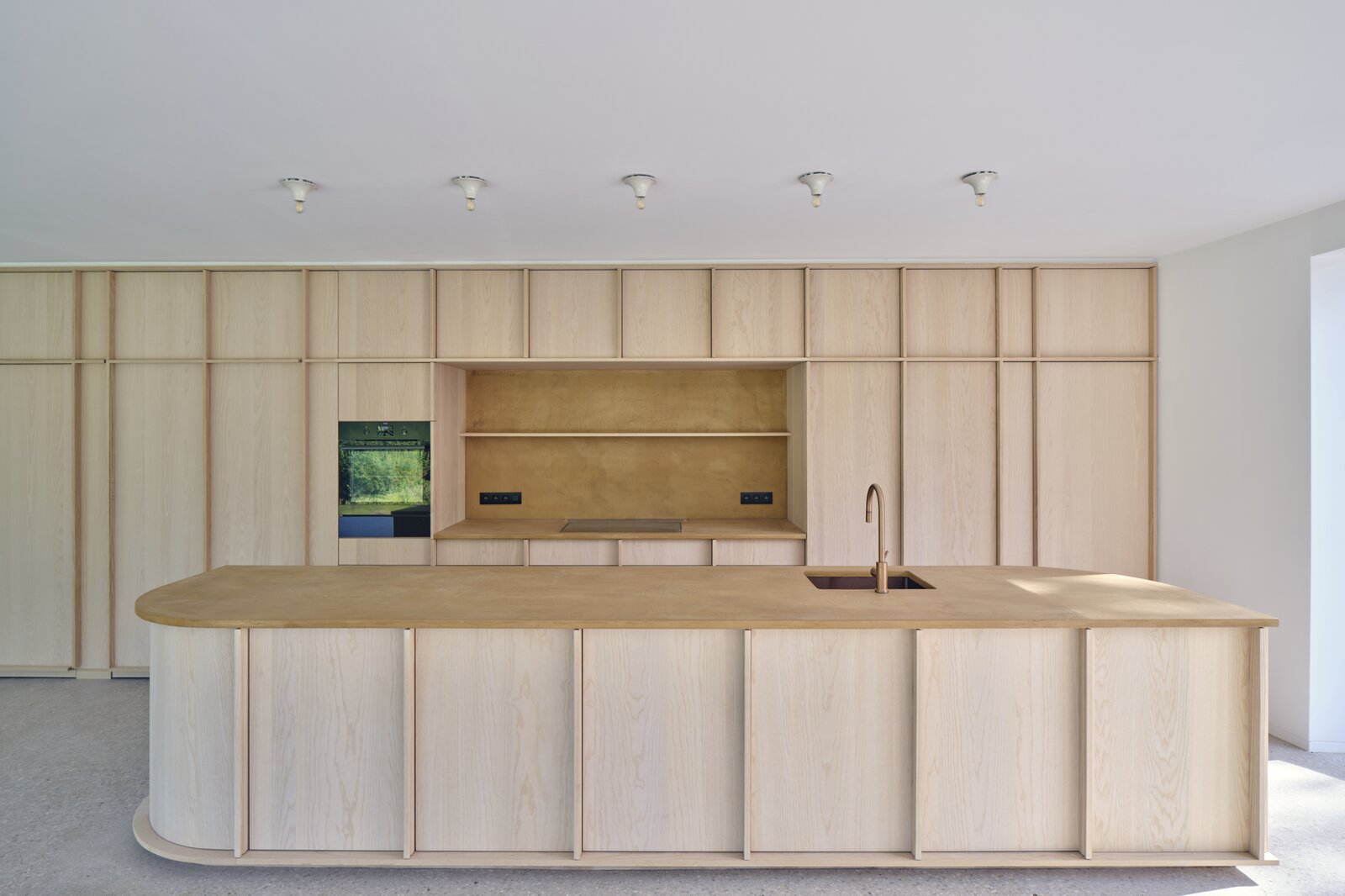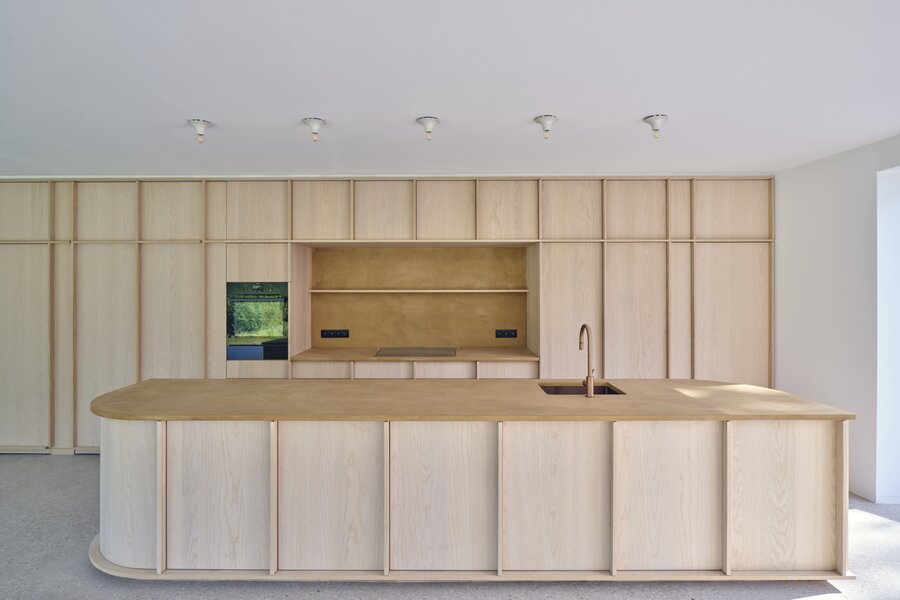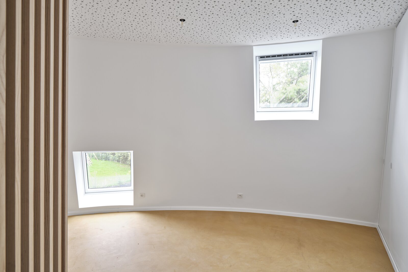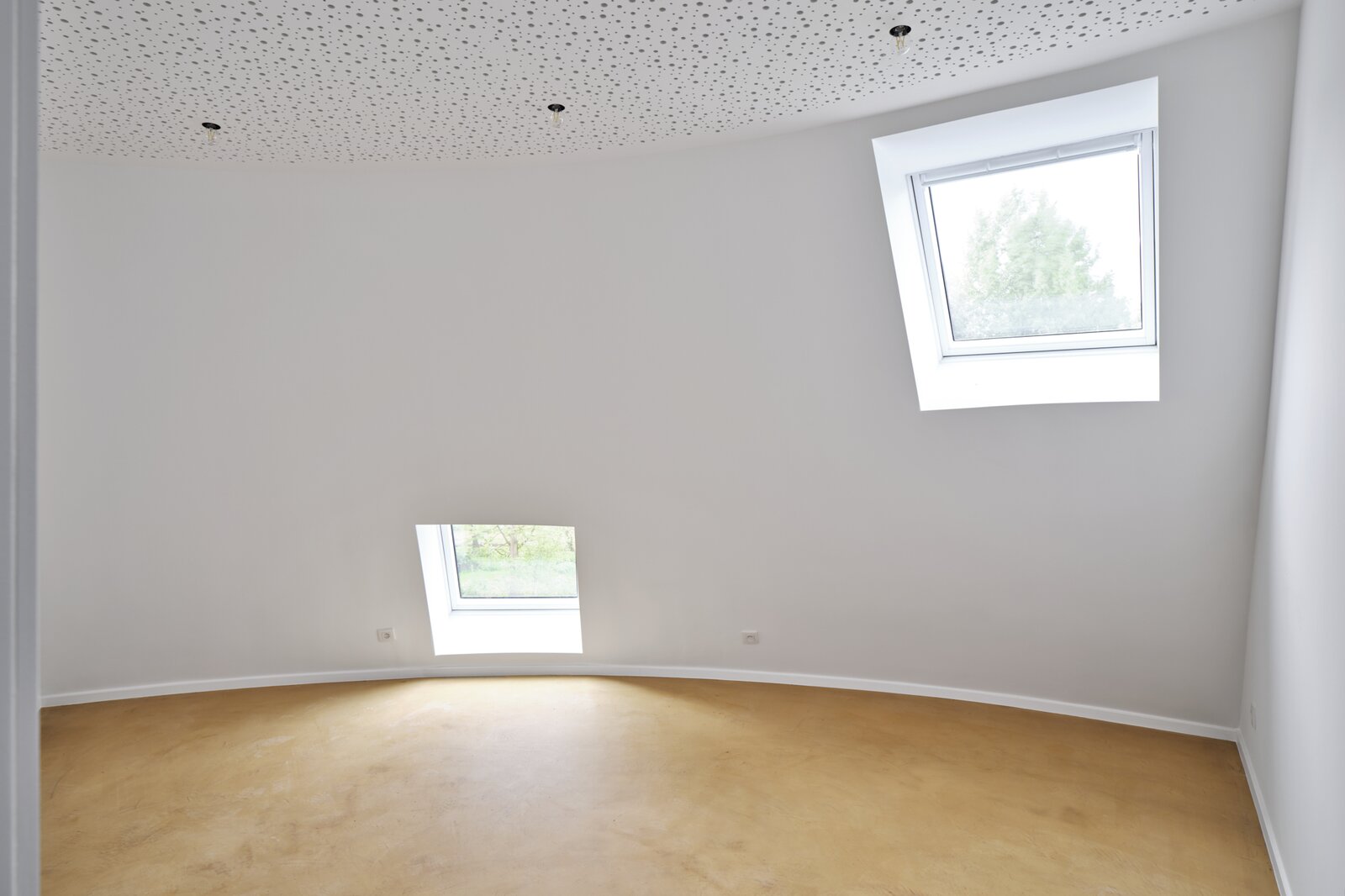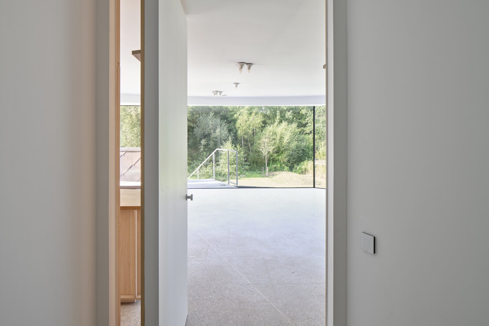 Dans un coin paisible de Dilbeek, en lisière d’une zone naturelle, se niche cette maison neuve de 2023 signée Lezze Architecten. Une sculpture habitable où lumière, espace et silence se rencontrent. Volumes courbes, baies vitrées cintrées et matériaux naturels composent une atmosphère rare. Avec env. 380 m² habitables, quatre chambres, trois salles de bains et une mezzanine centrale, elle marie volume et sérénité. Les larges fenêtres connectent intérieur et nature, laissant entrer la lumière et le rythme des saisons. L’intérieur a été entièrement réalisé sur mesure par Van Overstraeten, renommé pour son savoir-faire. Chaque élément — cuisine, escaliers, mobilier — s’intègre parfaitement à l’architecture. Performante énergétiquement (niveau E27), pompe à chaleur, isolation de haut niveau. Jardin naturel, accès direct à une zone boisée. Plus qu’un habitat, une véritable expérience architecturale.