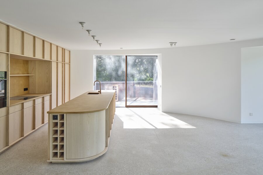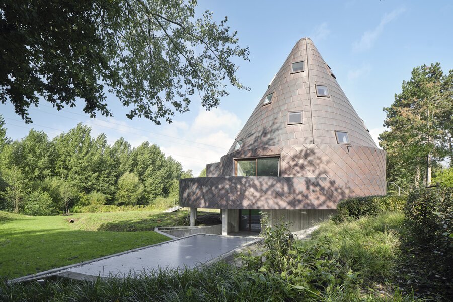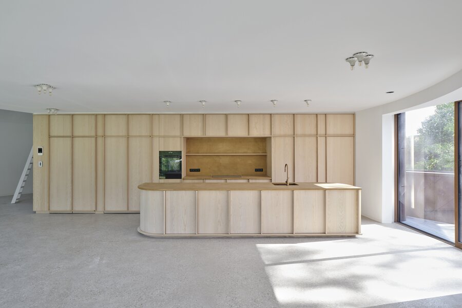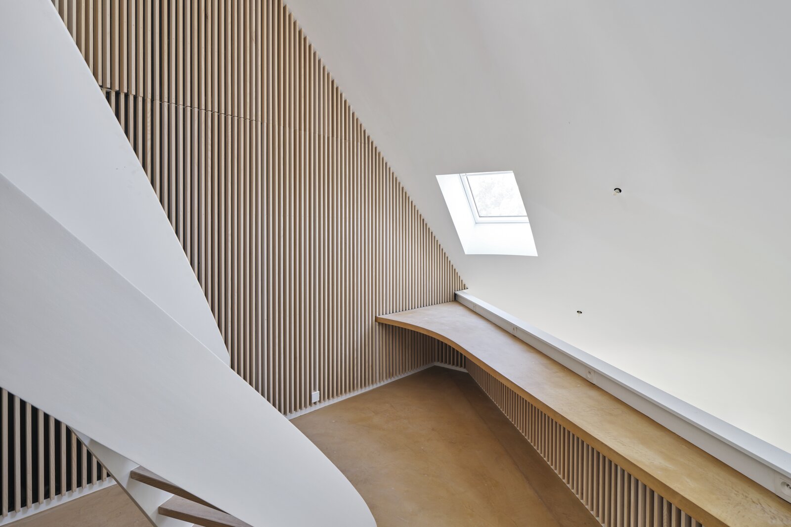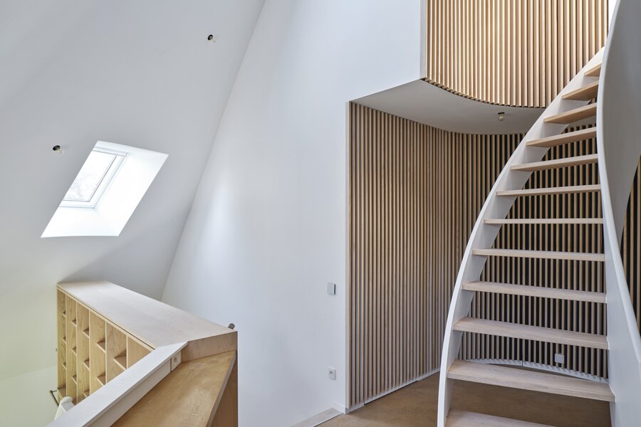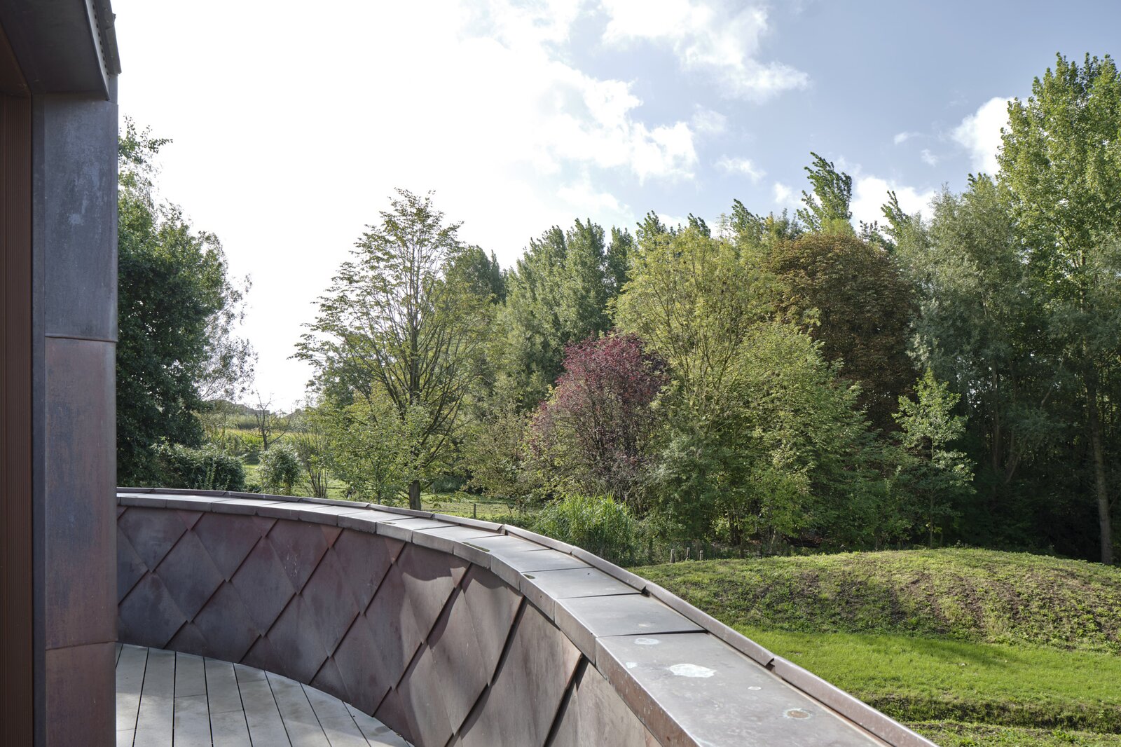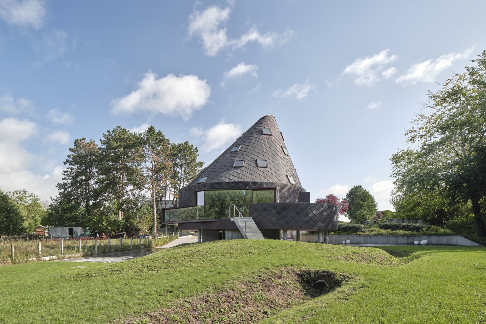 Dans un coin paisible de Dilbeek, en lisière d’une zone naturelle, se niche cette maison neuve de 2023 signée Lezze Architecten. Une sculpture habitable où lumière, espace et silence se rencontrent. Volumes courbes, baies vitrées cintrées et matériaux naturels composent une atmosphère rare. Avec env. 380 m² habitables, quatre chambres, trois salles de bains et une mezzanine centrale, elle marie volume et sérénité. Les larges fenêtres connectent intérieur et nature, laissant entrer la lumière et le rythme des saisons. L’intérieur a été entièrement réalisé sur mesure par Van Overstraeten, renommé pour son savoir-faire. Chaque élément — cuisine, escaliers, mobilier — s’intègre parfaitement à l’architecture. Performante énergétiquement (niveau E27), pompe à chaleur, isolation de haut niveau. Jardin naturel, accès direct à une zone boisée. Plus qu’un habitat, une véritable expérience architecturale.