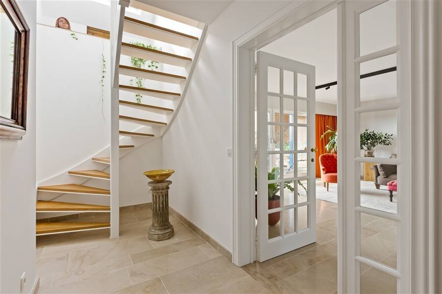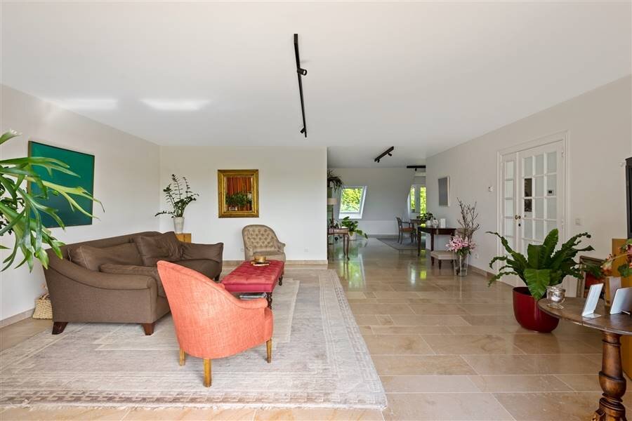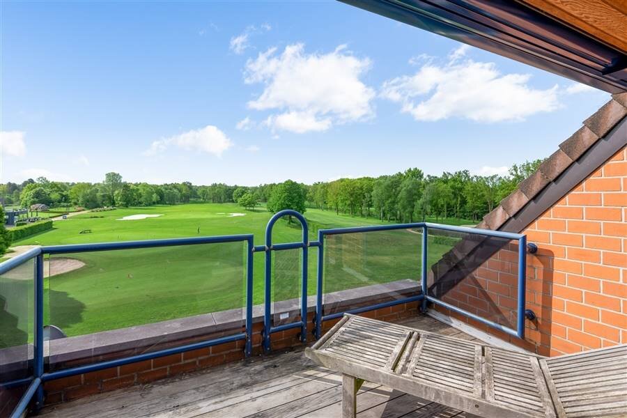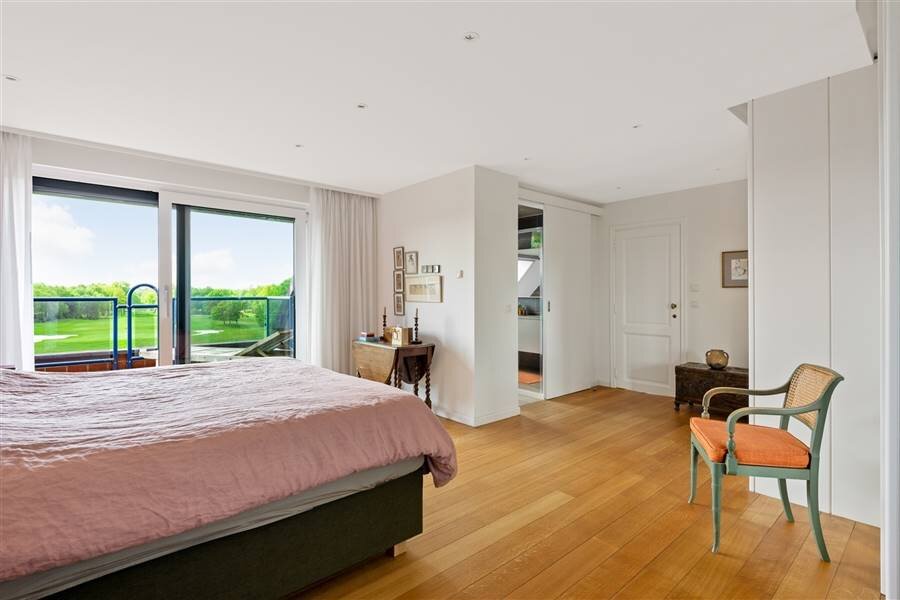 Via de inkomhal met vestiaire kast betreden we de lichte en ruime woonkamer en eetkamer (60m²) met hiernaast de luxueuze keuken (20m²) dewelke volledig is ingericht (vaatwasser, stoom oven, oven, microgolf, Amerikaanse ijskast, inductie kookplaat). Via de woonkamer is er toegang tot het groot terras (30m²) met prachtig zicht op het golfterrein. op de 1e verdieping bevindt zich een ruime nachthal, apart toilet, hoofdslaapkamer met eigen, vernieuwde badkamer (ligbad en douche), ingemaakte kastenwand, dressing, terras (7,70m²). 2de slaapkamer met douchekamer (plaats voor wasmachine en droogkast), gezellige leesruimte. 3de slaapkamer met ingemaakte kasten.