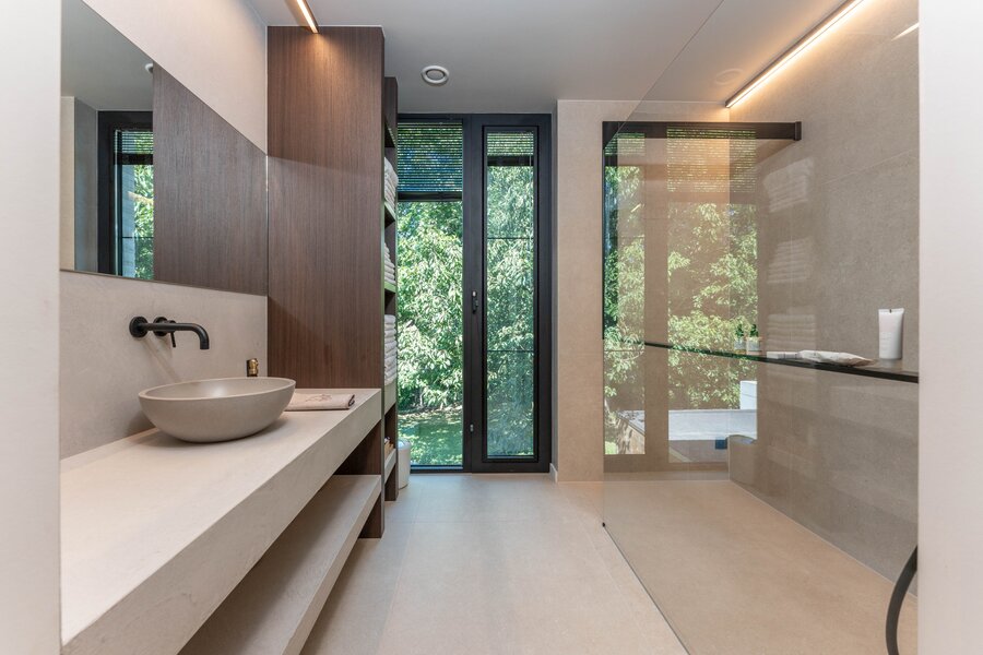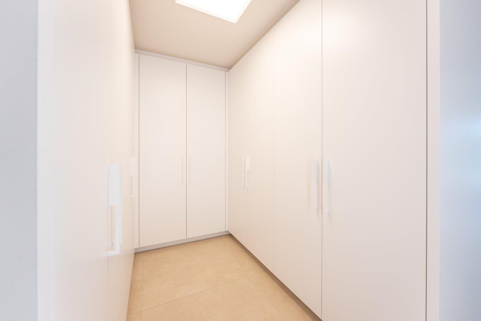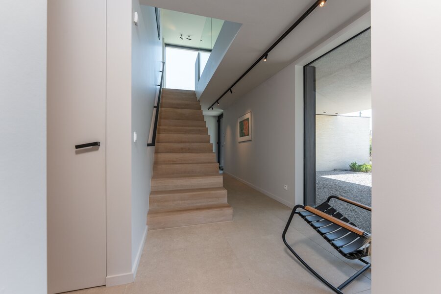 Een bijzonder pluspunt is de aanwezigheid van een privé-lift. Deze maakt de woning moeiteloos toegankelijk voor alle leeftijden en levensfasen. Zo combineert de villa niet alleen luxe en design, maar ook toekomstgericht wooncomfort dat meegroeit met de noden van zijn bewoners.
