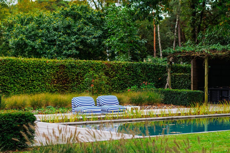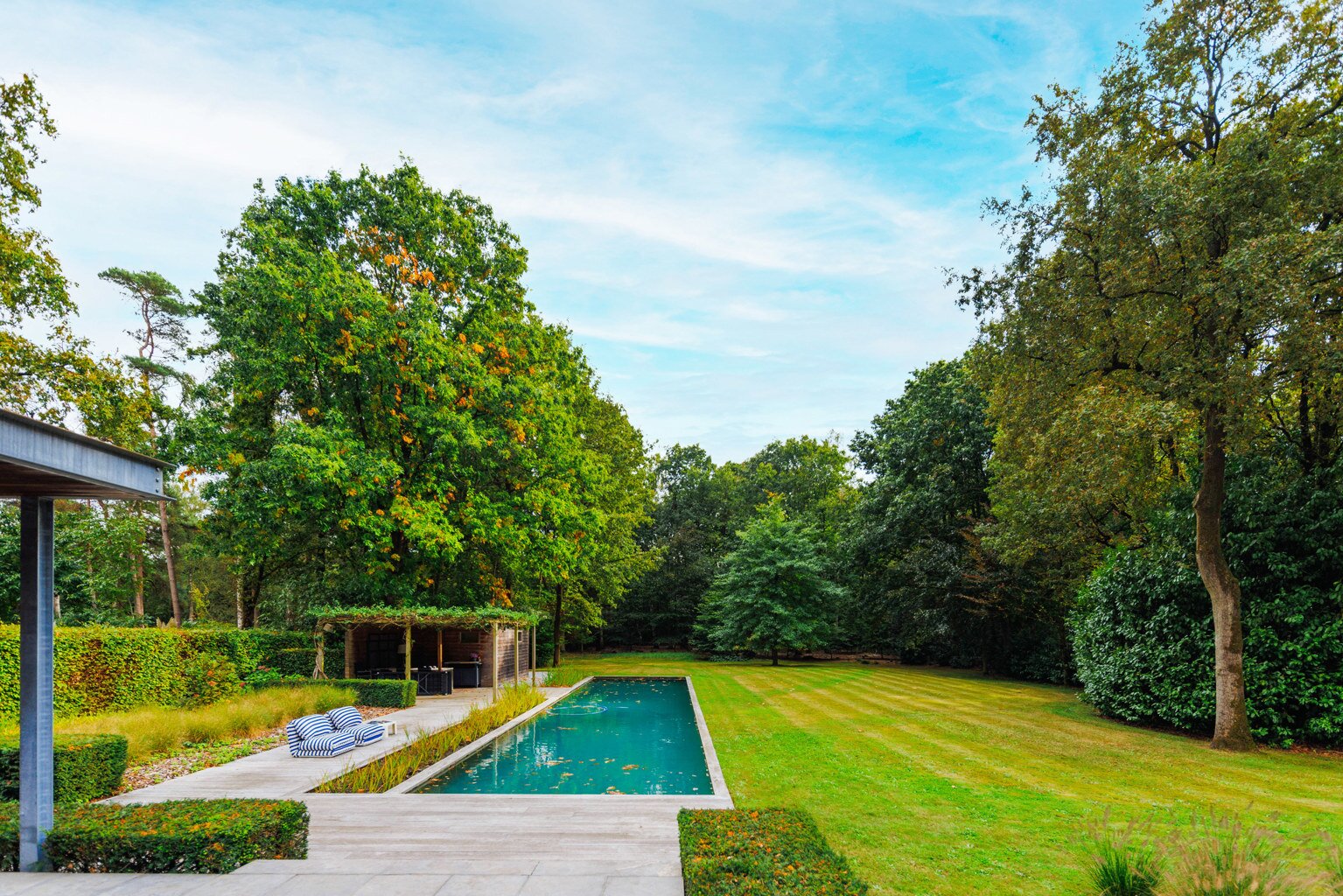 Jardin avec de nombreuses haies, en bordure d'un projet de boisement (bonjour les chevreuils !). Terrasse couverte avec salon, grand étang de baignade, pool house, sauna. Panneaux solaires, sous-sol, EPC A.