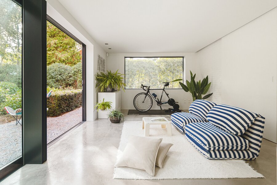 Portail automatique, jardin d'entrée avec local à vélos et nombreuses places de parking. Porte d'entrée en verre et hall d'entrée spacieux. A gauche : bureau. À droite : toilettes pour invités, garage double intérieur. Cuisine hyper-équipée avec entrée latérale. Le coin salle à manger avec armoires encastrées et vue imprenable sur le jardin. Puis le coin salon reposant, qui mène de nouveau au hall d'entrée. Au bout du couloir, quelques marches : autrefois espace de jeu, aujourd'hui coin salon supplémentaire avec salle de bains et cuisine - idéal pour le cohabitat ou la pratique.