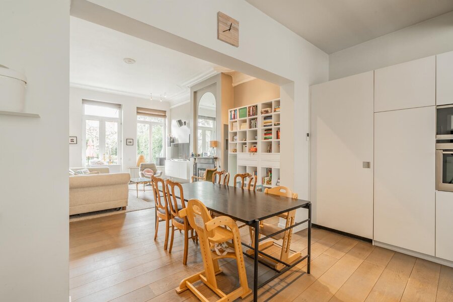 -Gelijkvloers: open keuken met gezellige leefruimte, directe toegang tot de tuin en het zwembad, berging