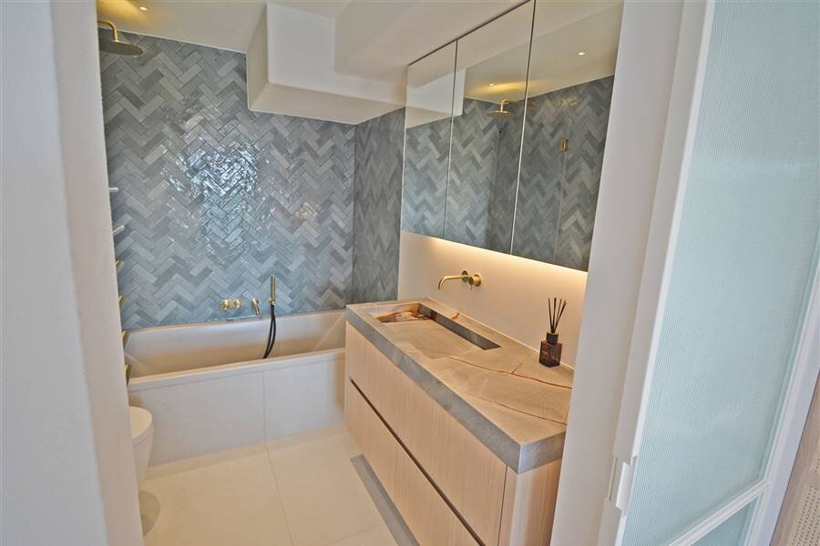 Dit appartement beschikt over drie smaakvol ingerichte slaapkamers, elk ontworpen om maximale ontspanning te garanderen. De hoofdbadkamer is een toonbeeld van verfijnd design met een stijlvolle inloopdouche en hoogwaardige afwerkingen.