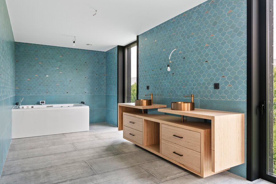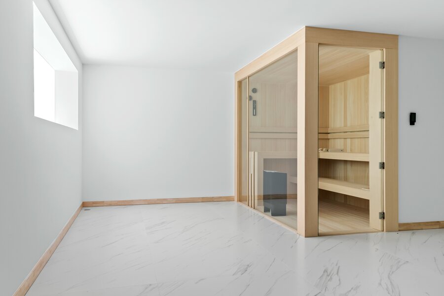 Ook de kelderverdieping is volledig afgewerkt in marmeren tegel en biedt talloze mogelijkheden. Je vindt er een stijlvolle lounge-/barruimte van 65 m², een sauna, een douchekamer, een toilet, een was- en bergruimte en een ruime technische ruimte.