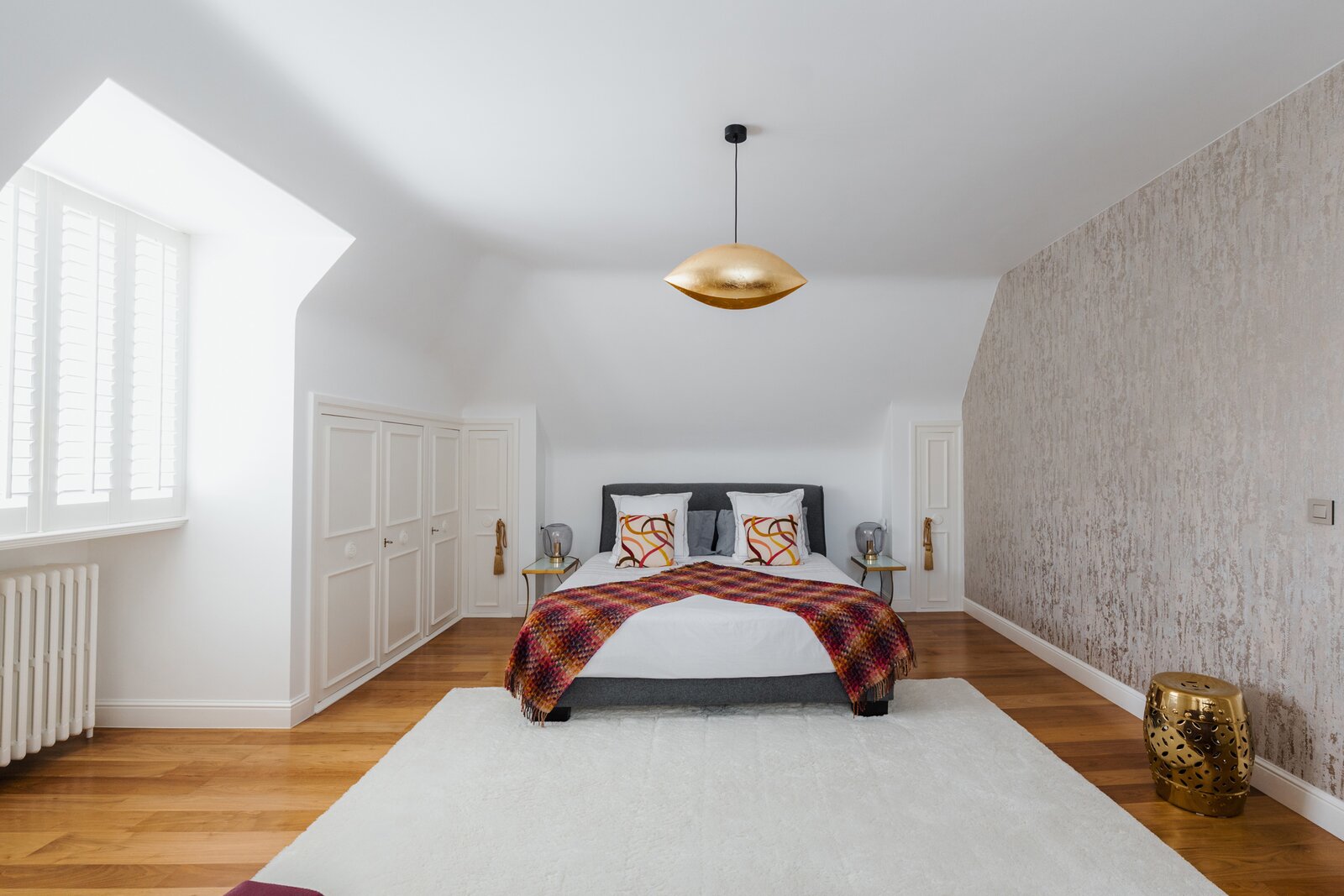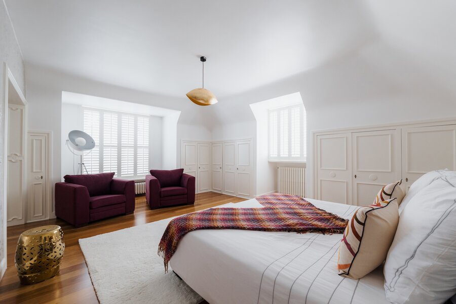 Chambre 1 (32m²) : parquet, placards sur mesure