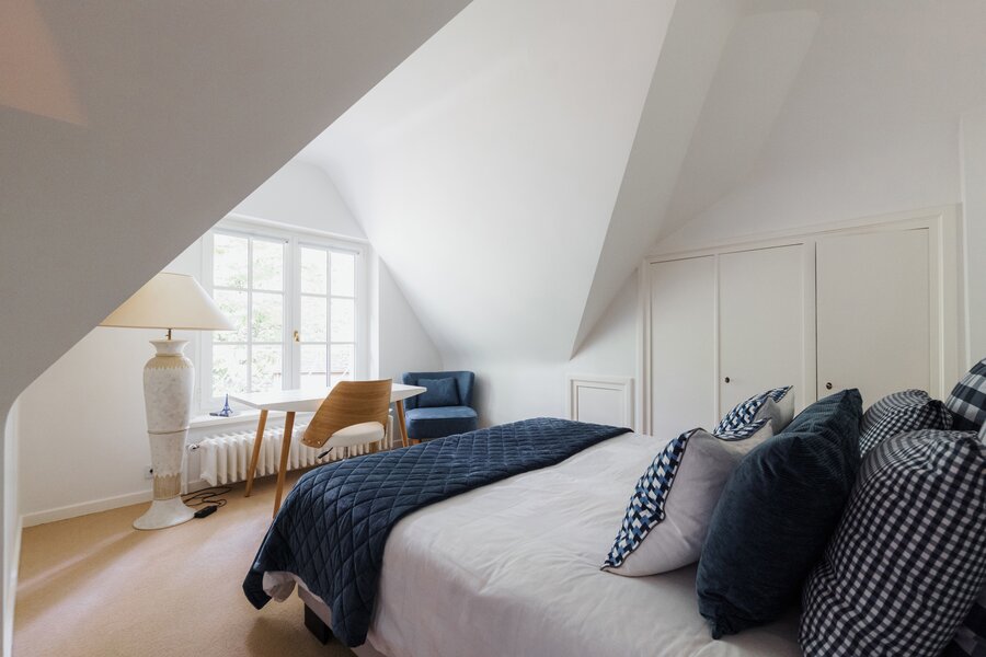 Chambre 4 (9m²) : tapis plein, placards sur mesure