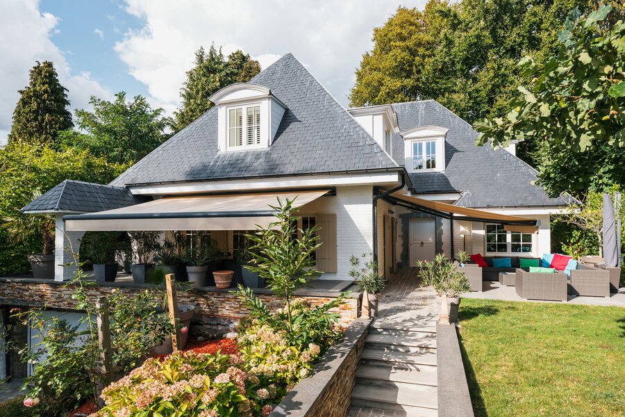 Plusieurs belles terrasses autour de la maison (70m²) avec bannes solaires chauffées et éclairées.