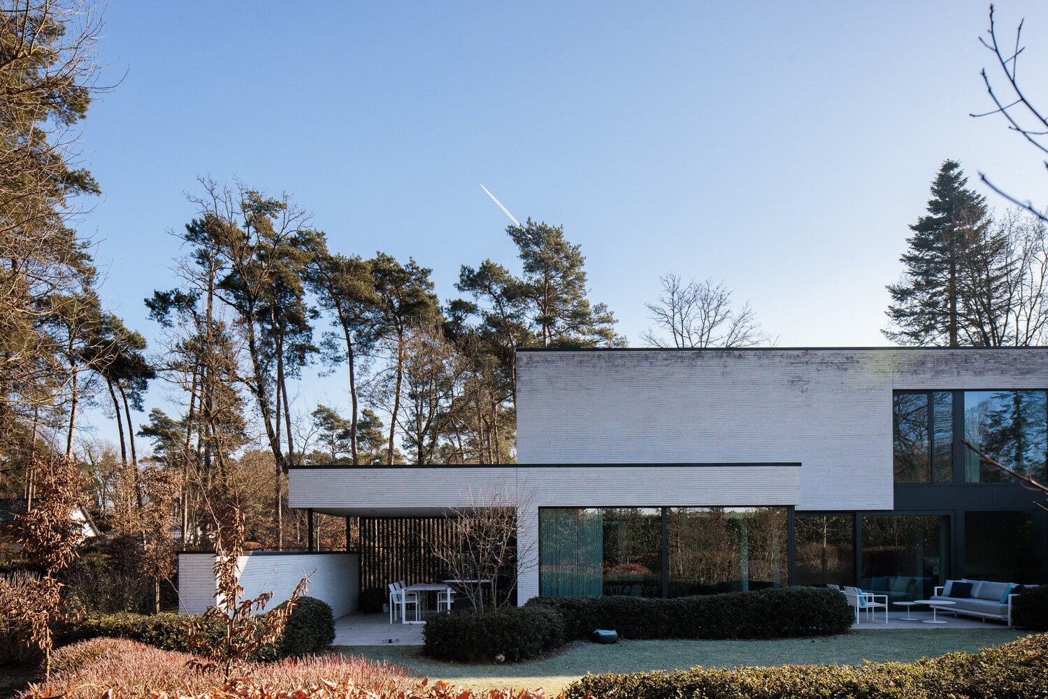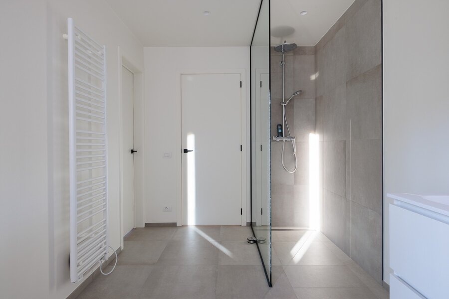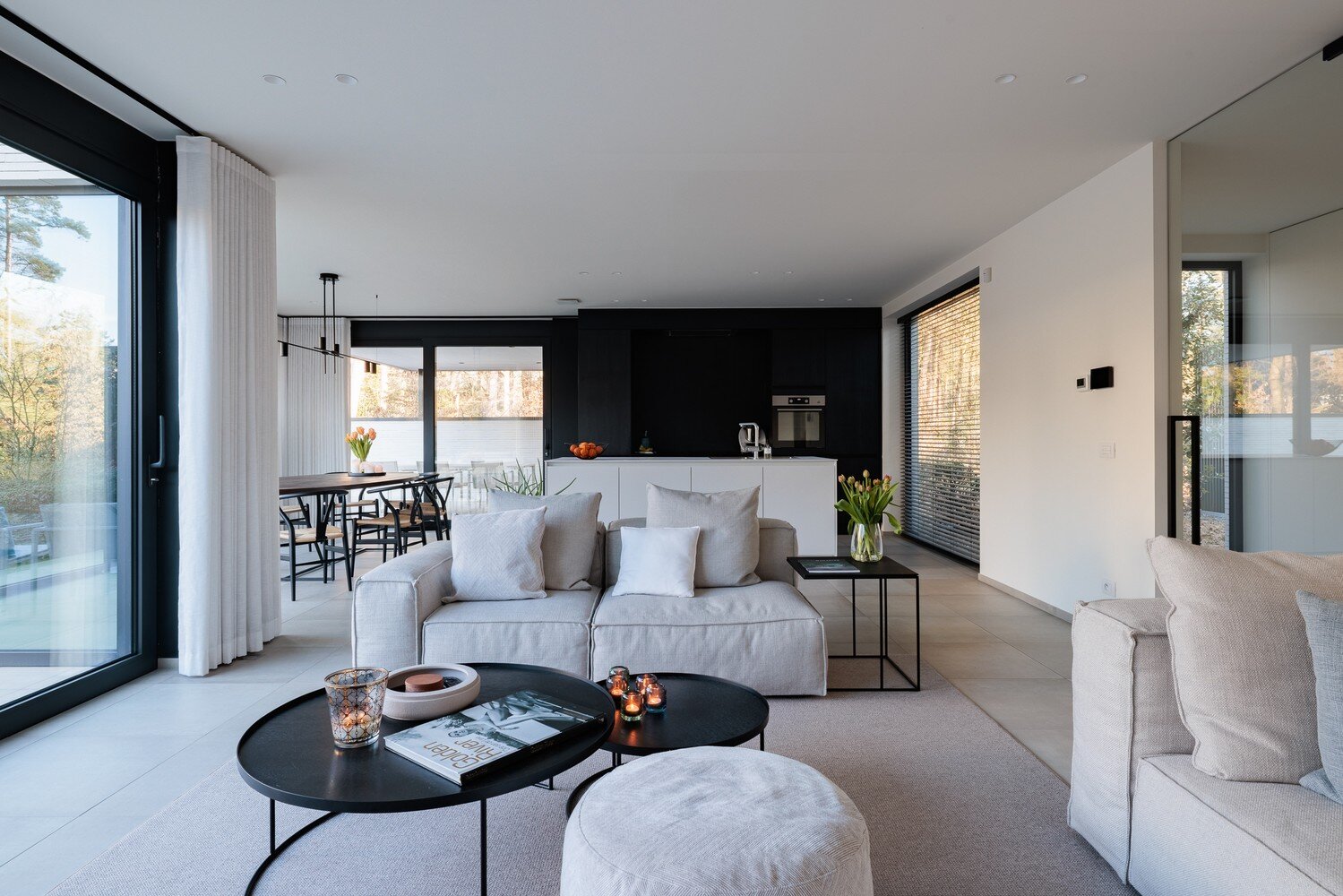 Bij binnenkomst ervaart u meteen het unieke karakter van de woning: een gesloten voorgevel biedt privacy, terwijl de inkomhal en het lichtrijke interieur een naadloze verbinding met de tuin en omgeving creëren. Grote raampartijen zorgen voor een panoramisch zicht op de tuin en laten het natuurlijke licht door de hele woning stromen.