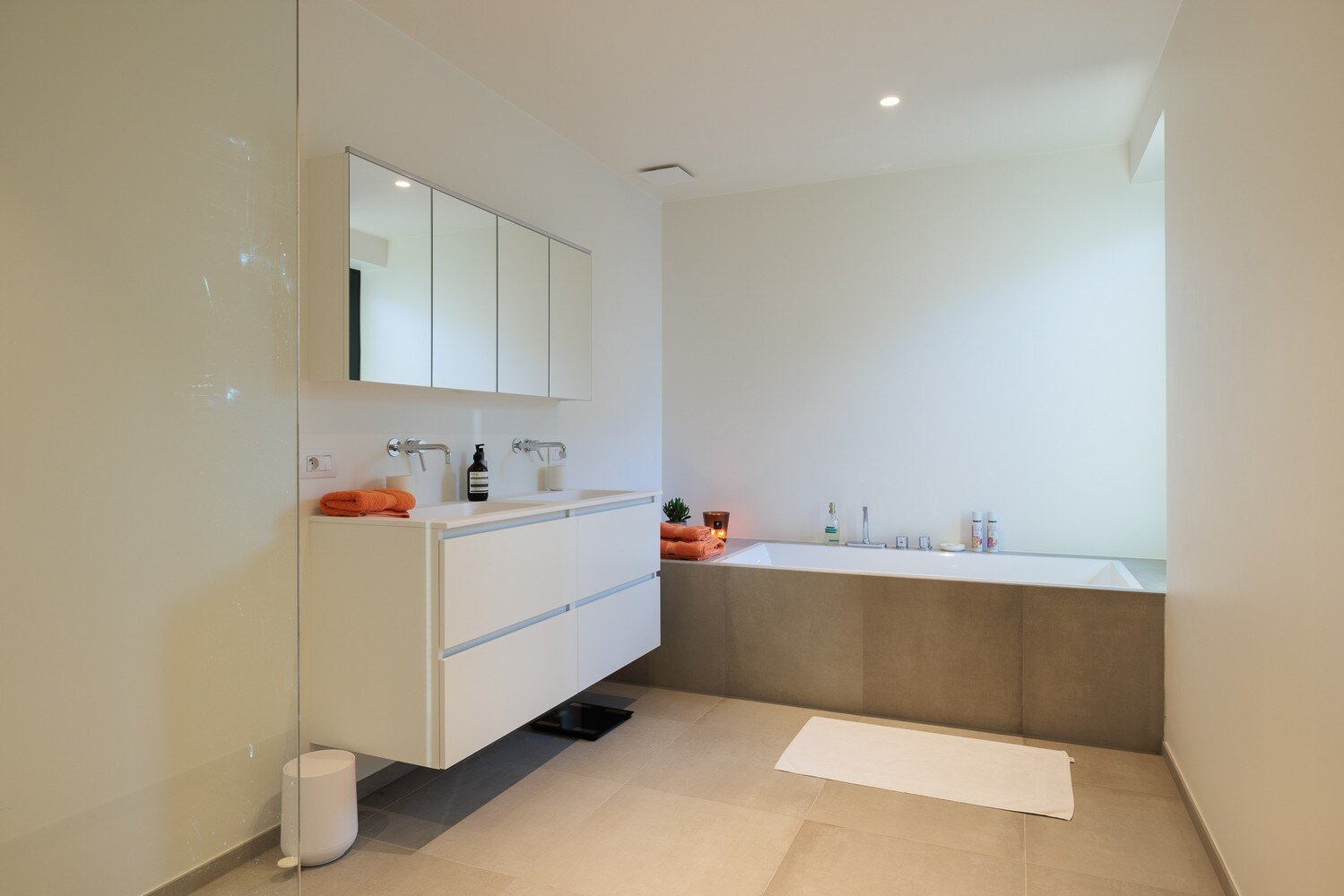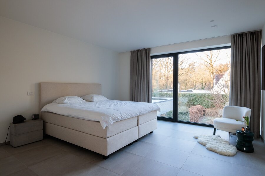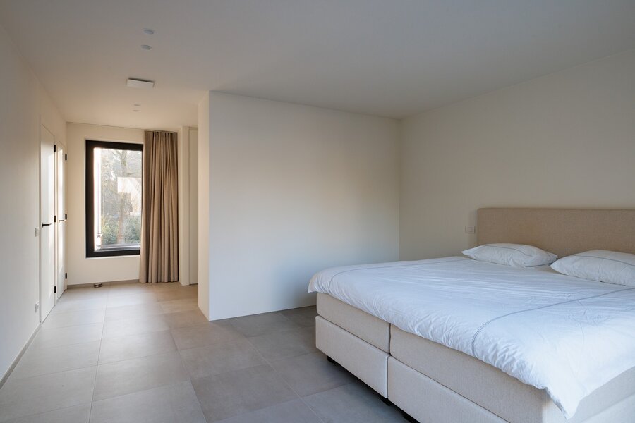 De verdieping biedt een masterbedroom met dressing en ensuite badkamer, voorzien van dubbel lavabo, ligbad en inloopdouche. Daarnaast zijn er 2 zeer ruime slaapkamers, een douchekamer met inloopdouche, apart toilet en een extra berging. De onderhoudsvriendelijke tuin is fraai aangelegd, met de jaarlijkse snoeiwerken inbegrepen in de huurprijs. Deze prachtig gelegen koppelvilla is beschikbaar vanaf 1/6/2026.