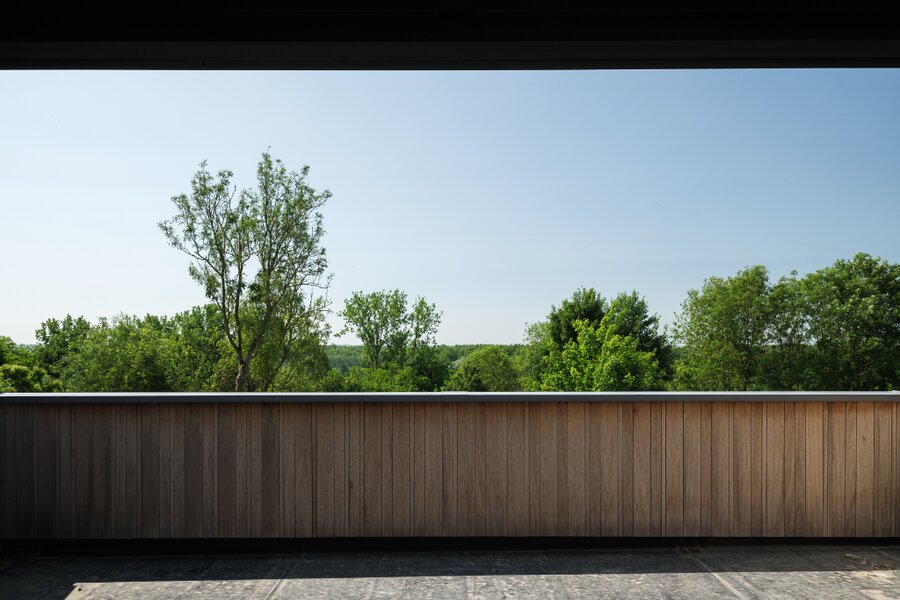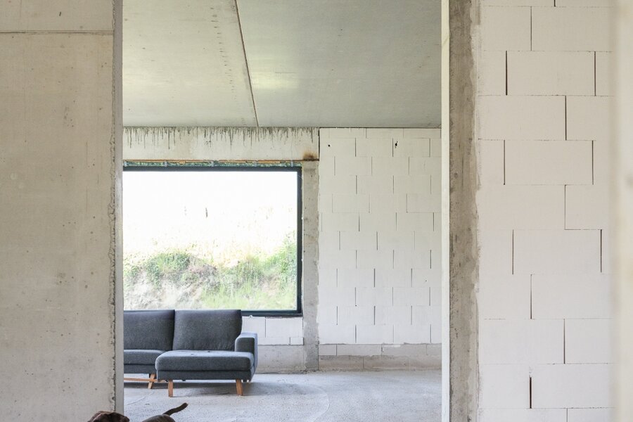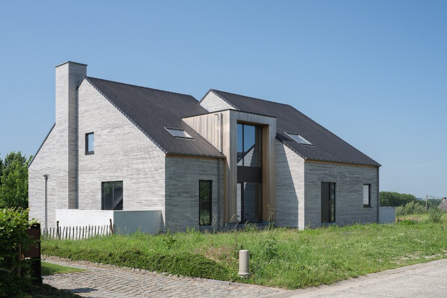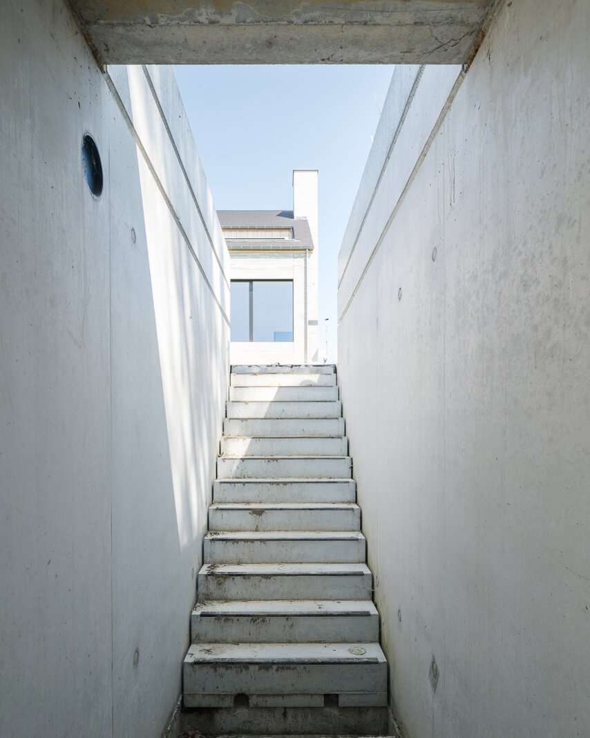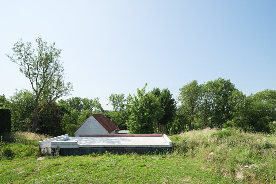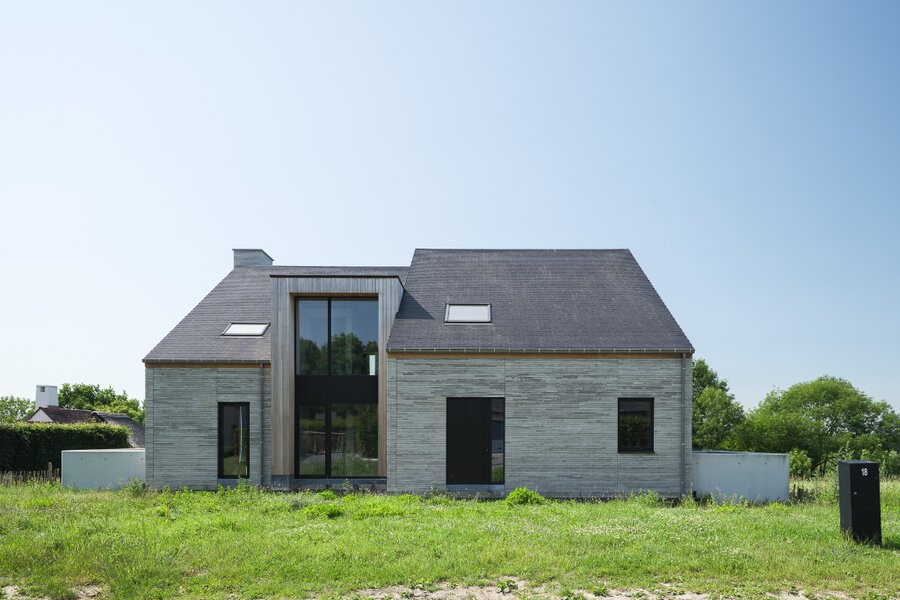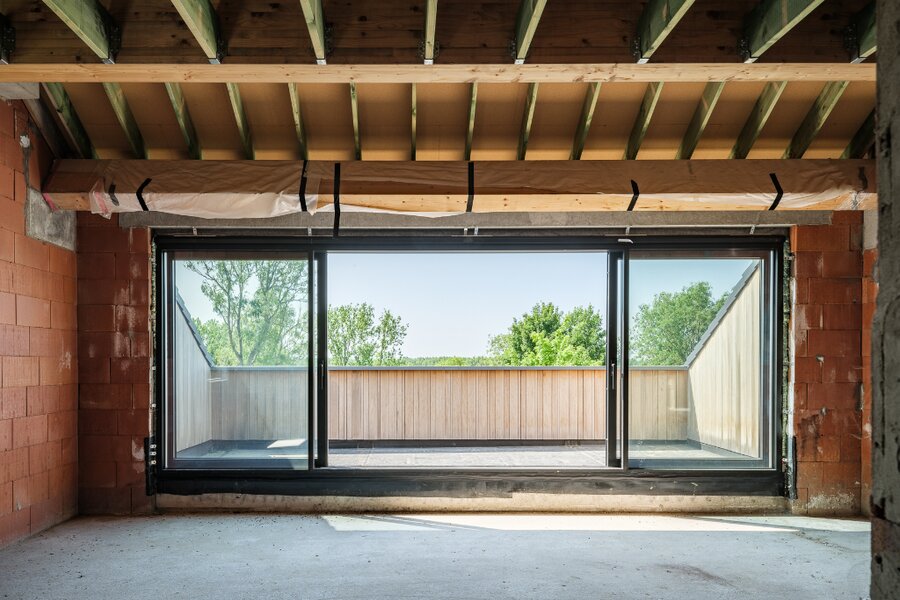 De architectuur is doordacht geïntegreerd in het glooiende landschap. De woning volgt het reliëf van het terrein, waardoor de leefruimte en eetkamer zich visueel en fysiek verbinden met de lagergelegen tuin — een perfecte dialoog tussen binnen en buiten.