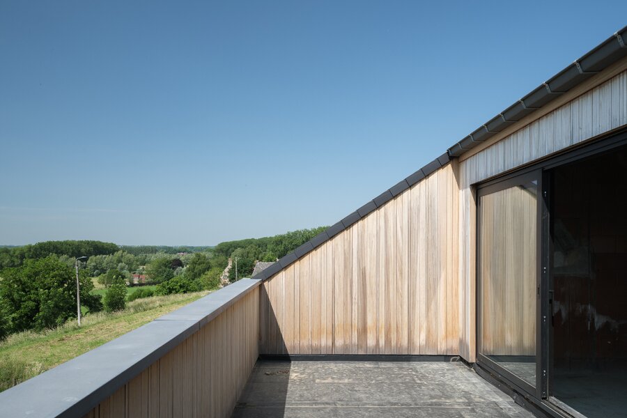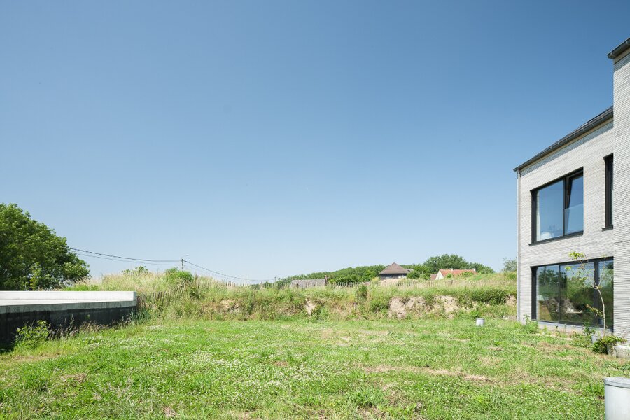 Architecturale casco-nieuwbouw bestaande uit een uitzonderlijke stapelwoning met onderliggende garage en adembenemende zichten over de Scheldevallei.