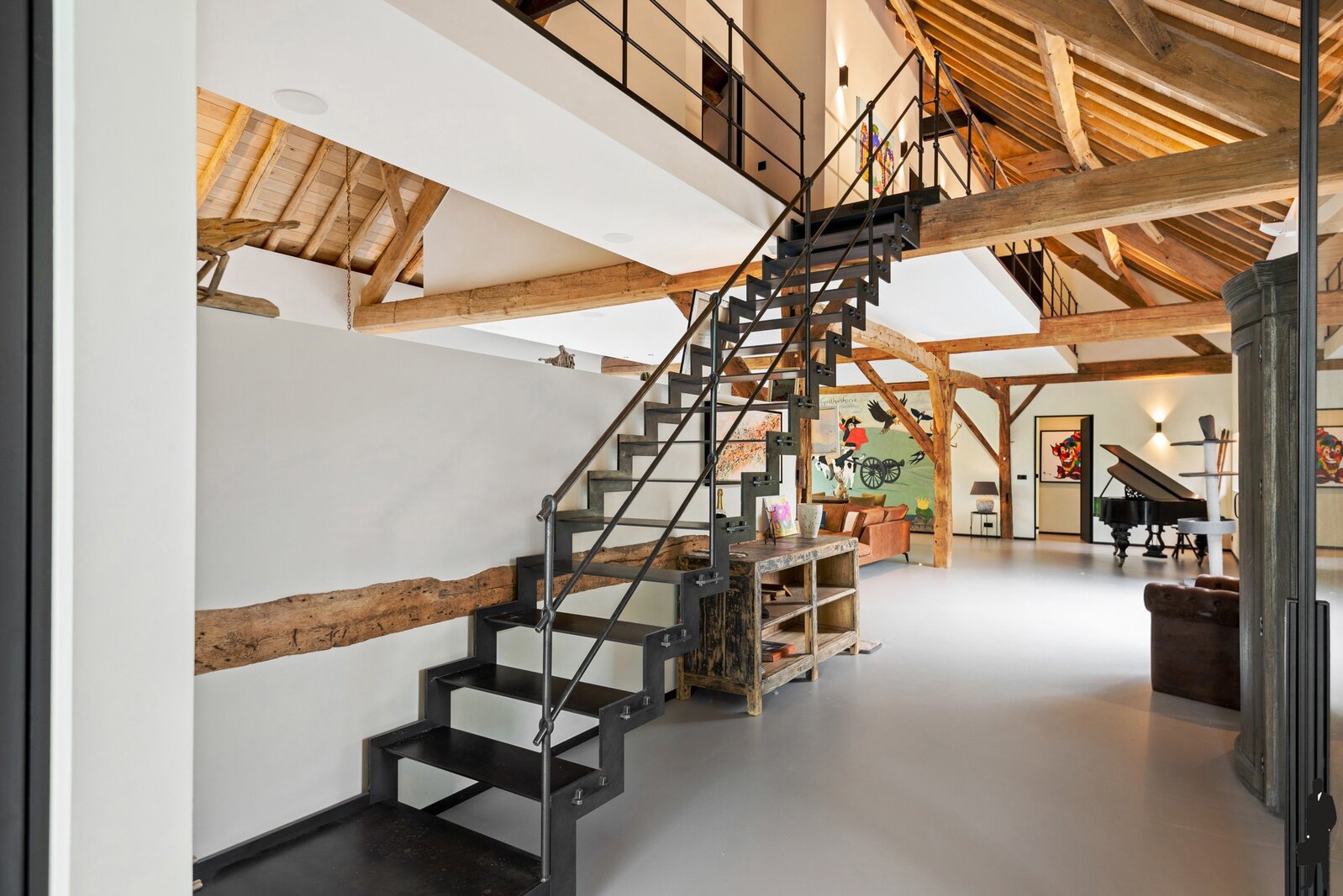 - Bereikbaar met zwarte stalen trap in de leefruimte