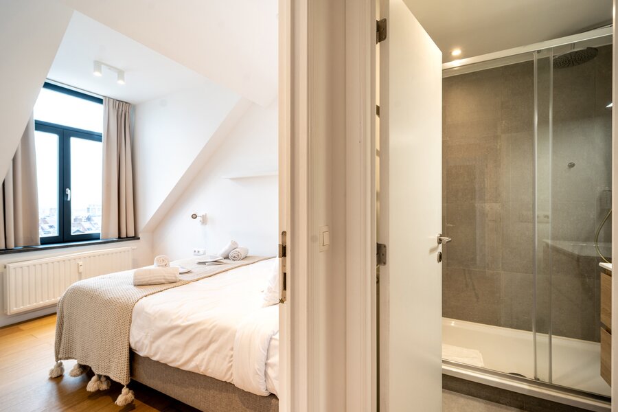 Idéalement situé entre la Place Stéphanie et la Place du Châtelain, à proximité des commerces et transports en commun, dans une maison Beaux-Arts d'inspiration Renaissance de 1907 entièrement rénovée, appartement duplex meublé d’une superficie brute selon PEB de ± 207 m² offrant trois chambres et deux terrasses.