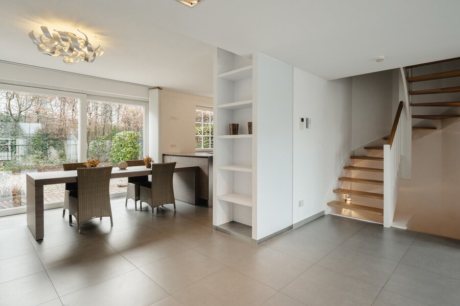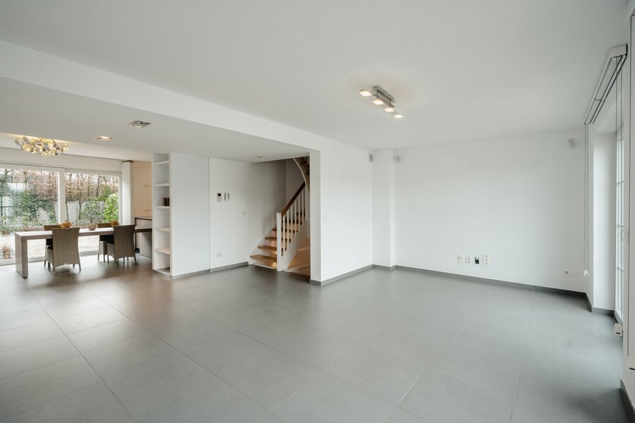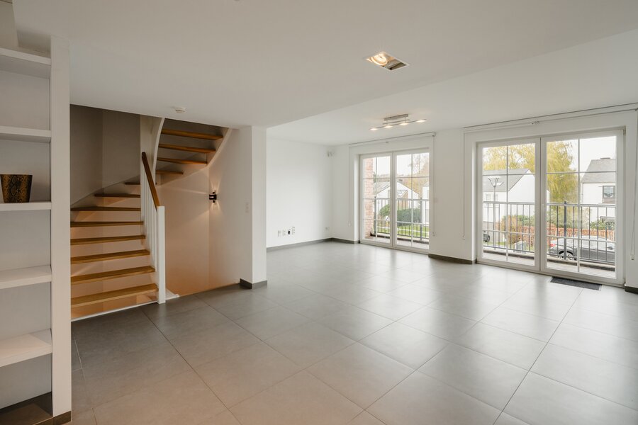 Le rez-de-chaussée accueille un vaste hall d’entrée avec vestiaire, une buanderie, ainsi qu’un garage pour deux voitures, équipé d’une porte automatique. Au rez-de-jardin, un lumineux espace de vie s’ouvre sur la terrasse et le jardin. Il se prolonge d’une cuisine moderne parfaitement équipée, formant un ensemble convivial et fonctionnel. L’étage comprend un hall de nuit, trois belles chambres, une salle de douche et une salle de bains. Le deuxième étage offre deux chambres supplémentaires ainsi qu’un local technique. Libre immédiatement.
