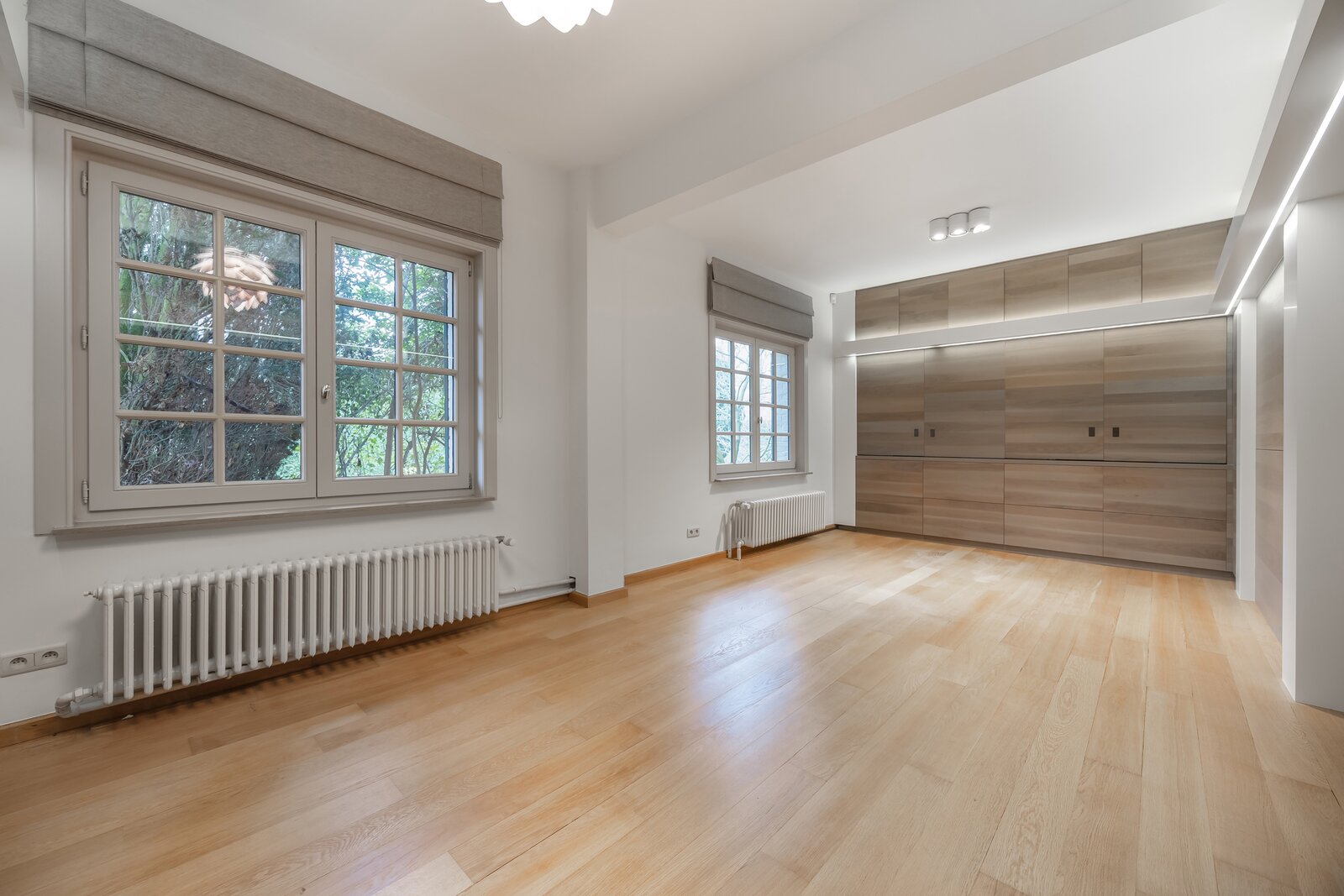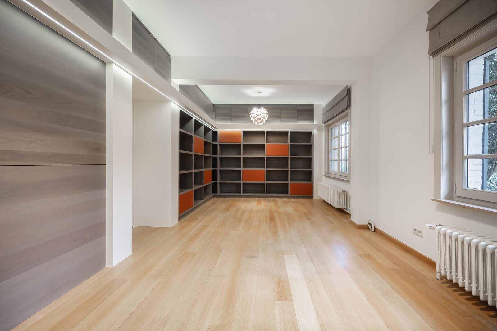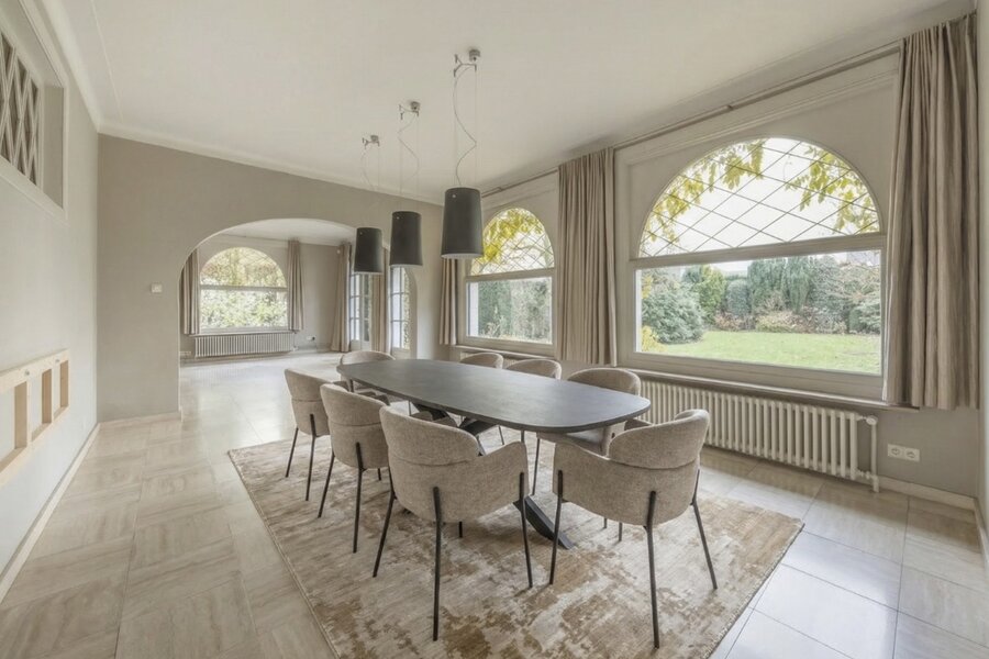Binnen valt meteen de royale indeling op. De villa beschikt over vijf volwaardige slaapkamers en twee badkamers, waardoor ze geschikt is voor diverse woonvormen zoals grote gezinnen, co-housing, kangoeroewonen of wonen en werken onder één dak. De zolderverdieping biedt bijkomende mogelijkheden en kan ingericht worden als extra slaapkamers, bureau, hobbyruimte of polyvalente verdieping.