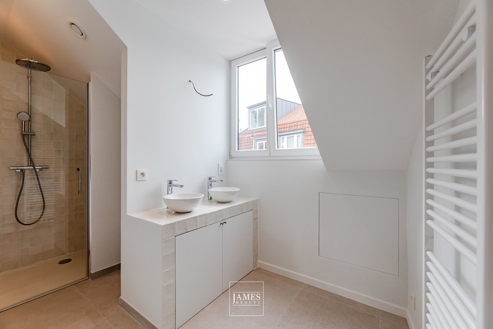 Nichée au cœur de Boitsfort, à deux pas des commerces, du marché et de la forêt de Soignes, cette charmante maison de village a été entièrement remise à neuf et se présente en parfait état. Le rez-de-chaussée accueille un espace salon convivial ,une salle à manger , une grande cuisine américaine s’ouvrant sur une petite cour-jardin de ±12 m², idéale pour profiter d’un extérieur intime. Au premier étage, un espace bureau complète une chambre de ±13 m² avec sa salle de douche attenante. Le deuxième étage offre une deuxième chambre de ±14 m², également équipée de sa salle de douche privative. Le PEB est B-, confirmant la qualité de la rénovation et l’efficacité énergétique du bien. Une maison de caractère, prête à emménager, combinant confort moderne, intimité et une localisation privilégiée au cœur de l’un des villages les plus recherchés de Bruxelles. Informations données à titre informatif et non contractuelles