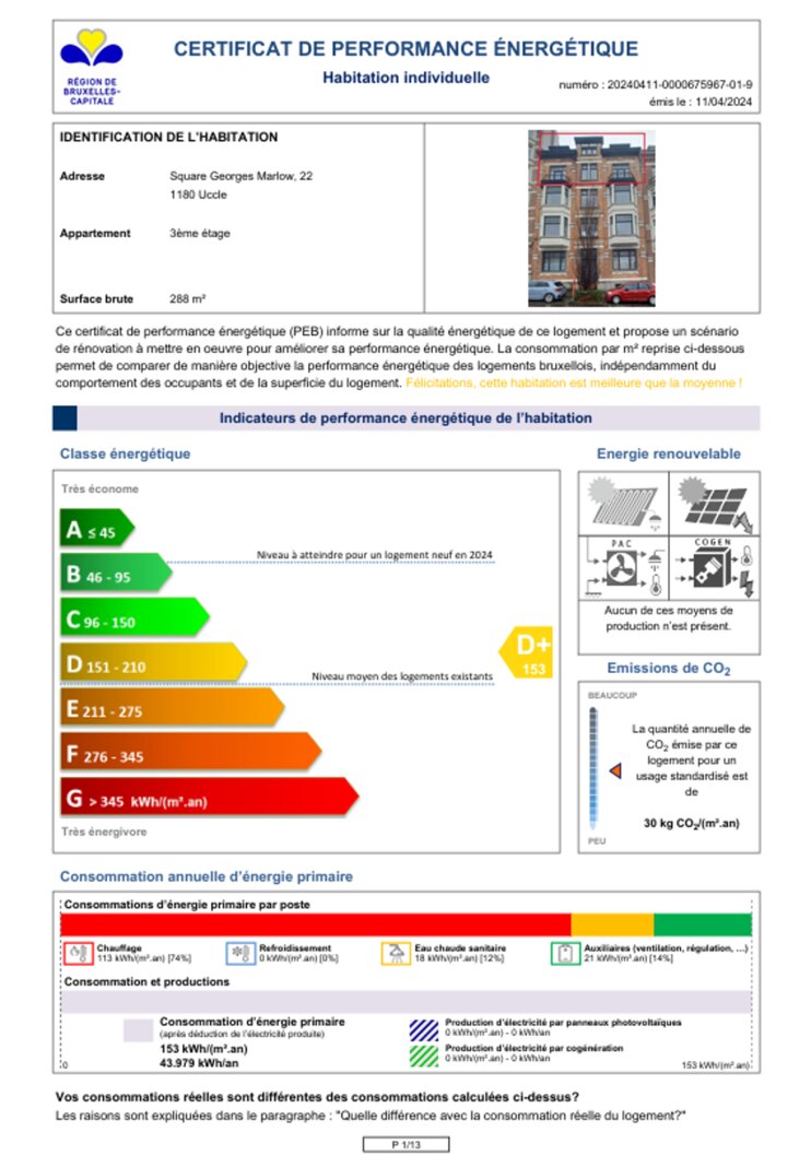 PEB : D+, faibles charges dans l'immeuble et électricité conforme.