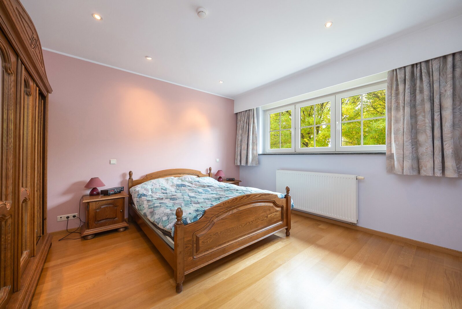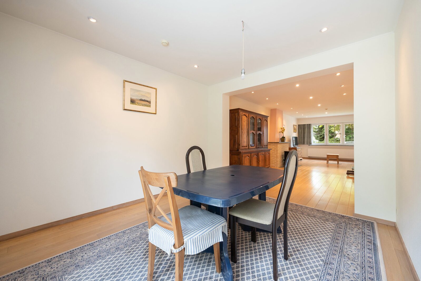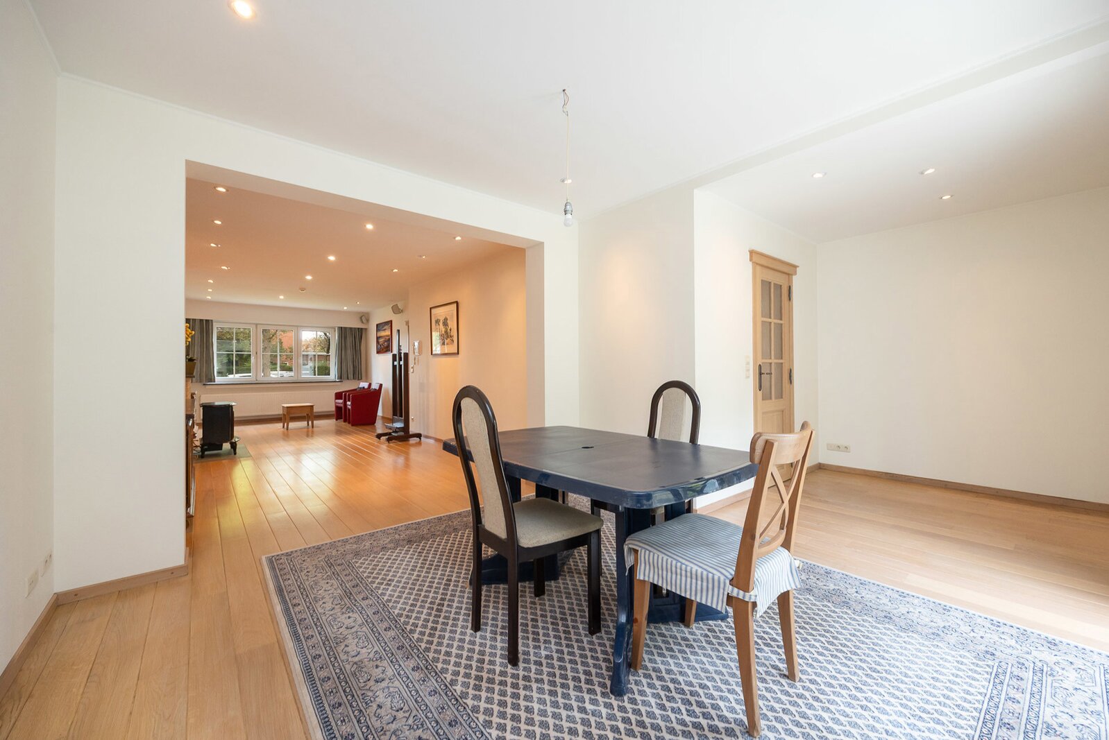 - Gelijkvloers: inkomhal, gezellige leefruimte op parket, aangrenzende keuken, grote garage/wasplaats, gastentoilet, overdekte koer, patio met uitschuifbare luifel