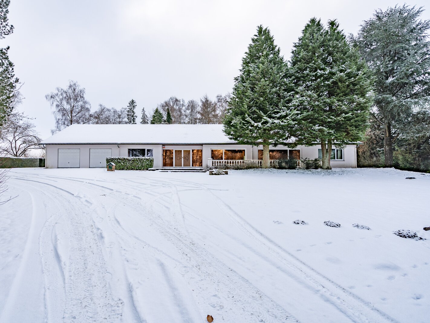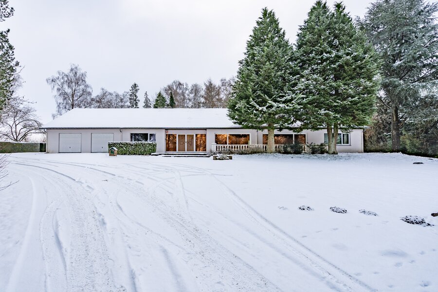 Construite en 1975, cette habitation développe une surface habitable impressionnante de ± 450 m², offrant de vastes volumes de plain-pied et une grande liberté d’aménagement. Elle se compose notamment de quatre chambres, de généreux espaces de vie lumineux et d’un double garage.