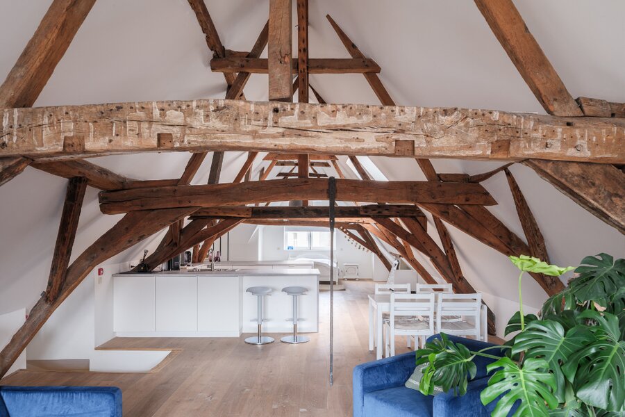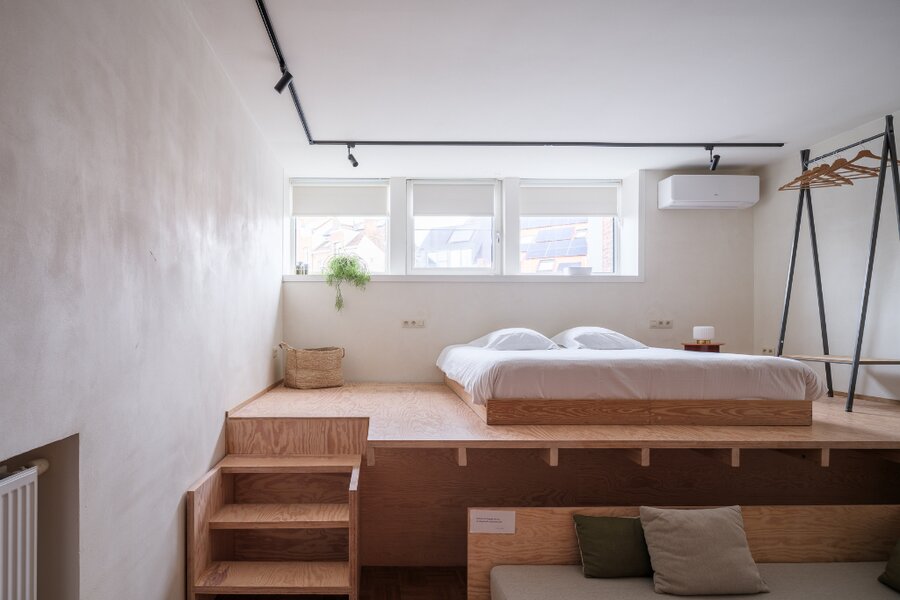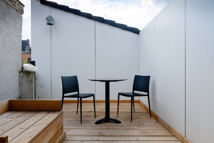 Bijzondere opbrengsteigendom bestaande uit een dakappartement en drie afzonderlijke kamers met eigen sanitair