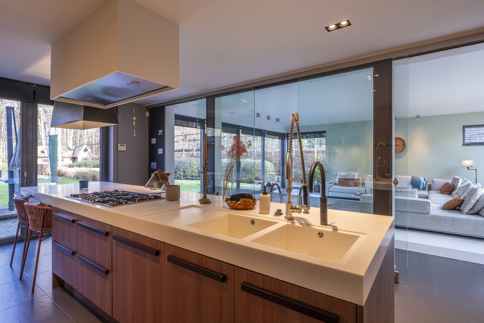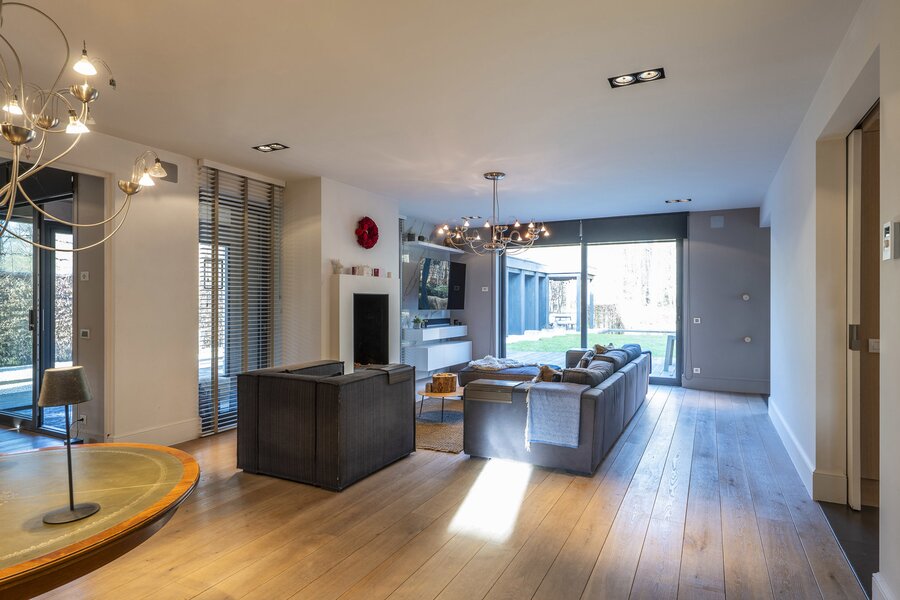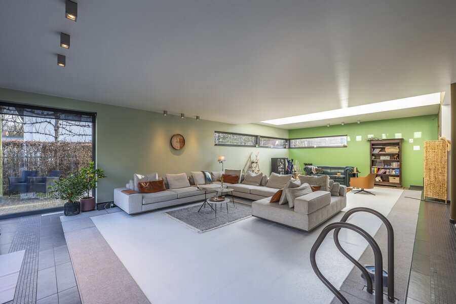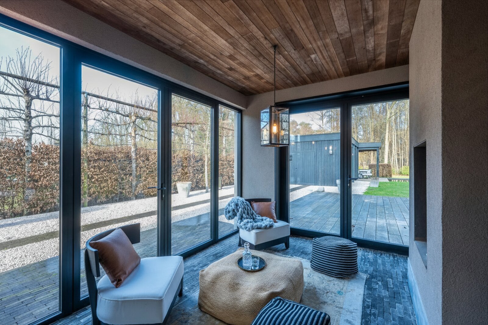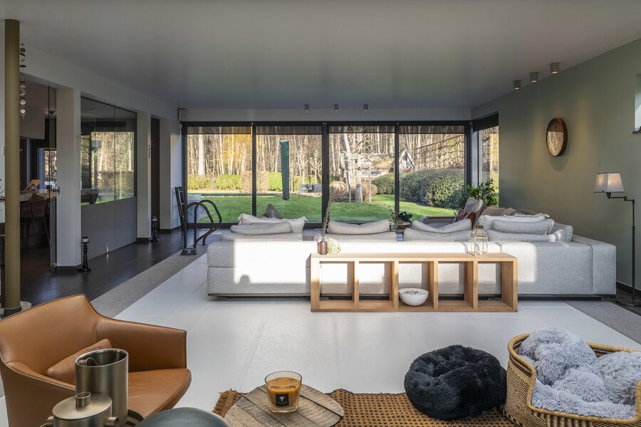 Tijdloos design, mooie zichtlijnen door het hele huis, enorm veel lichtinval, en opvallend veel focus op rust en ontspanning, maken dat je hier echt kan binnenstappen, het werk achter je laten, en genieten van al het heerlijks dat binnen & buiten te bieden heeft: open haarden, binnenzwembad, home cinema, verschillende dakterrassen, zwemvijver & poolhouse, prachtig aangelegde tuin met boszicht, meerdere terrassen… Alle stress valt weg en een gevoel van harmonie, rust en balans neemt over als je hier kan vertoeven.