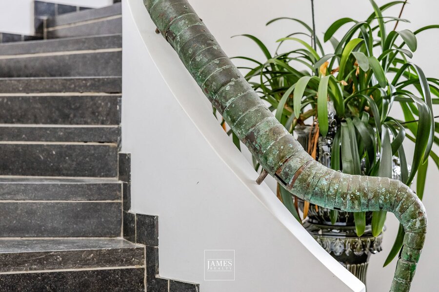 La maison comprend notamment six chambres et cinq salles de bain, permettant d’accueillir confortablement famille et invités. Un ascenseur dessert les différents niveaux de la propriété, apportant un confort supplémentaire et facilitant la circulation au sein de la maison.