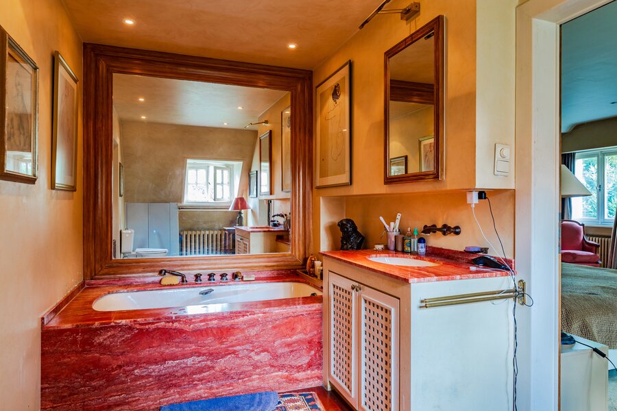 Édifiée sur un terrain privatif de ± 12 ares 50, parfaitement orienté sud-ouest, la maison développe une surface habitable d’environ 375 m² pour une surface bâtie totale de ± 600 m².