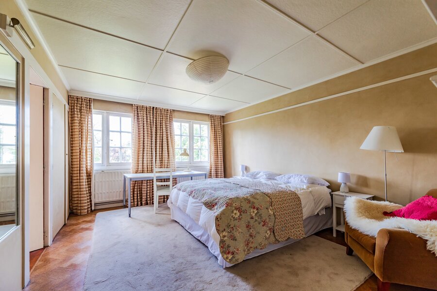 Les réceptions sont vastes et lumineuses, grâce à une façade large de 21 mètres. La villa propose 5 à 6 chambres, 4 salles de bains, ainsi qu’un garage pour 2 à 3 voitures. PEB G