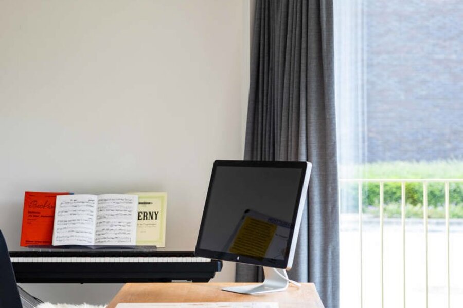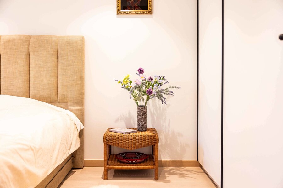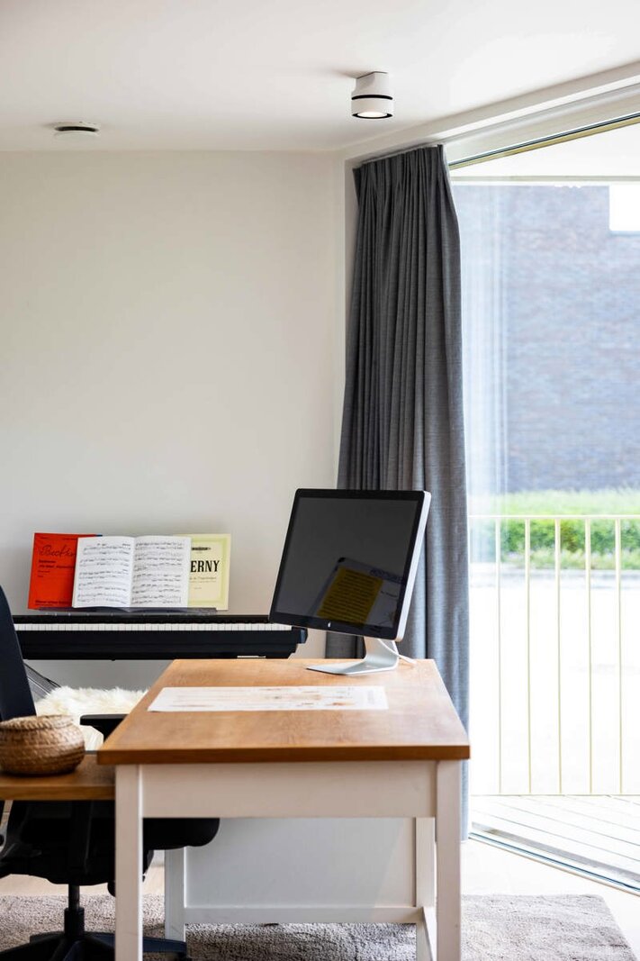 La chambre principale de 35 m² offre de nombreuses possibilités : elle peut être aménagée en chambre à coucher, combinée à un espace bureau élégant ou même entièrement transformée en bureau à domicile.