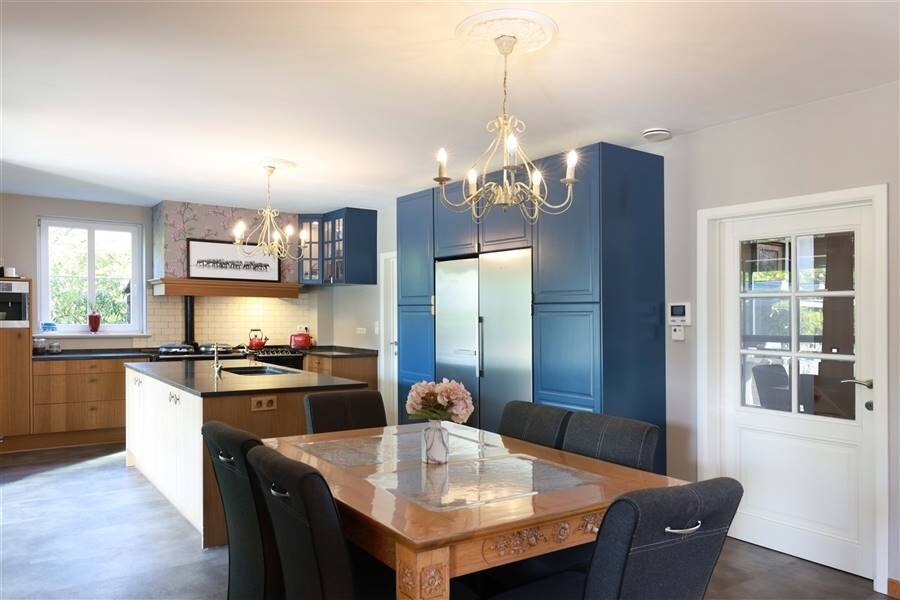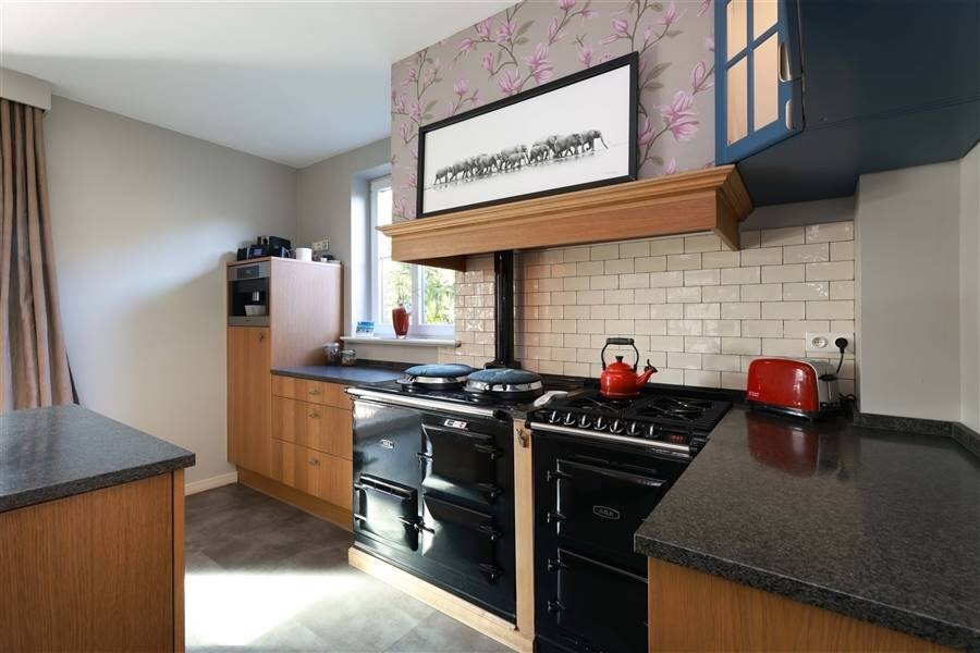 + Volledig ingebouwde keuken met eiland voorzien van alle comfort en kwalitatieve toestellen zoals een AGA fornuis met warmteopslag en aanvullende module