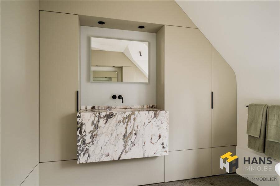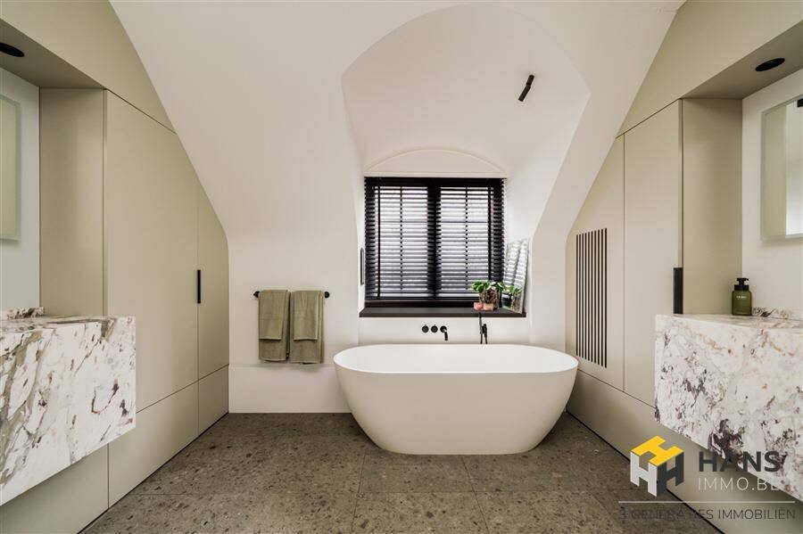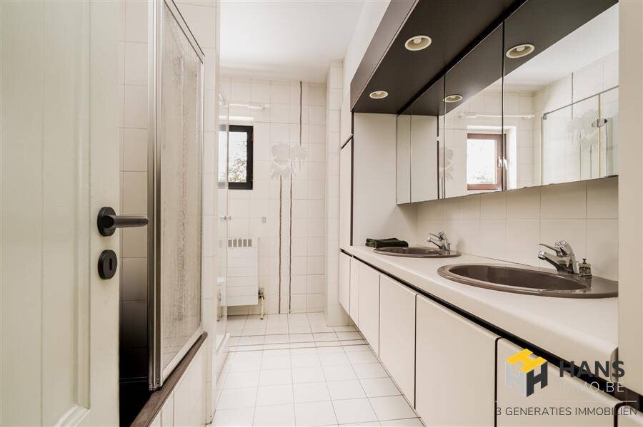 Een comfortabele trap geeft toegang tot de kelder met een volwaardige plafondhoogte en een oppervlakte van ca. 45 m². De elektrische installatie is driefasig en de woning is voorzien van domotica. Het perceel is bereikbaar via twee aparte toegangen (Oudstrijderslei en Vriesedonklei) en beschikt over een dubbele garage van ca. 100 m² met een ruime zolder, wat extra opslag- of gebruiksmogelijkheden biedt. Meer info en foto's op www.hansimmo.be