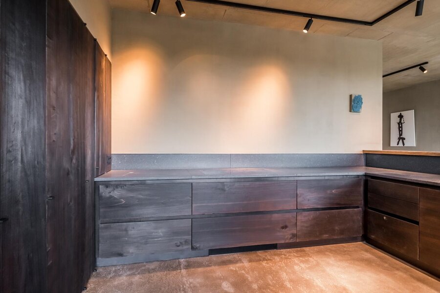 L'intérieur de cette unité a été décoré par Axel Vervoordt lui-même, selon la philosophie de vie japonaise wabi sabi, qui met l'accent sur l'authenticité, la simplicité pure et l'élégance de l'imparfait. Ajoutez à cela l'utilisation de beaux matériaux et vous obtenez une atmosphère particulièrement apaisante - zen jusque dans les moindres détails.