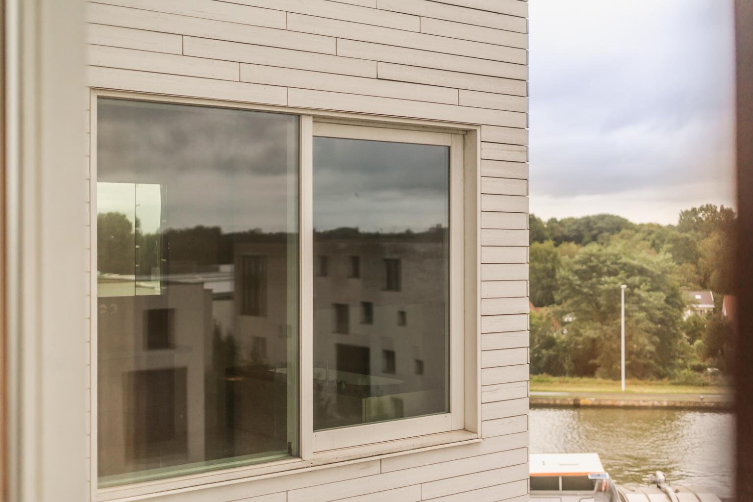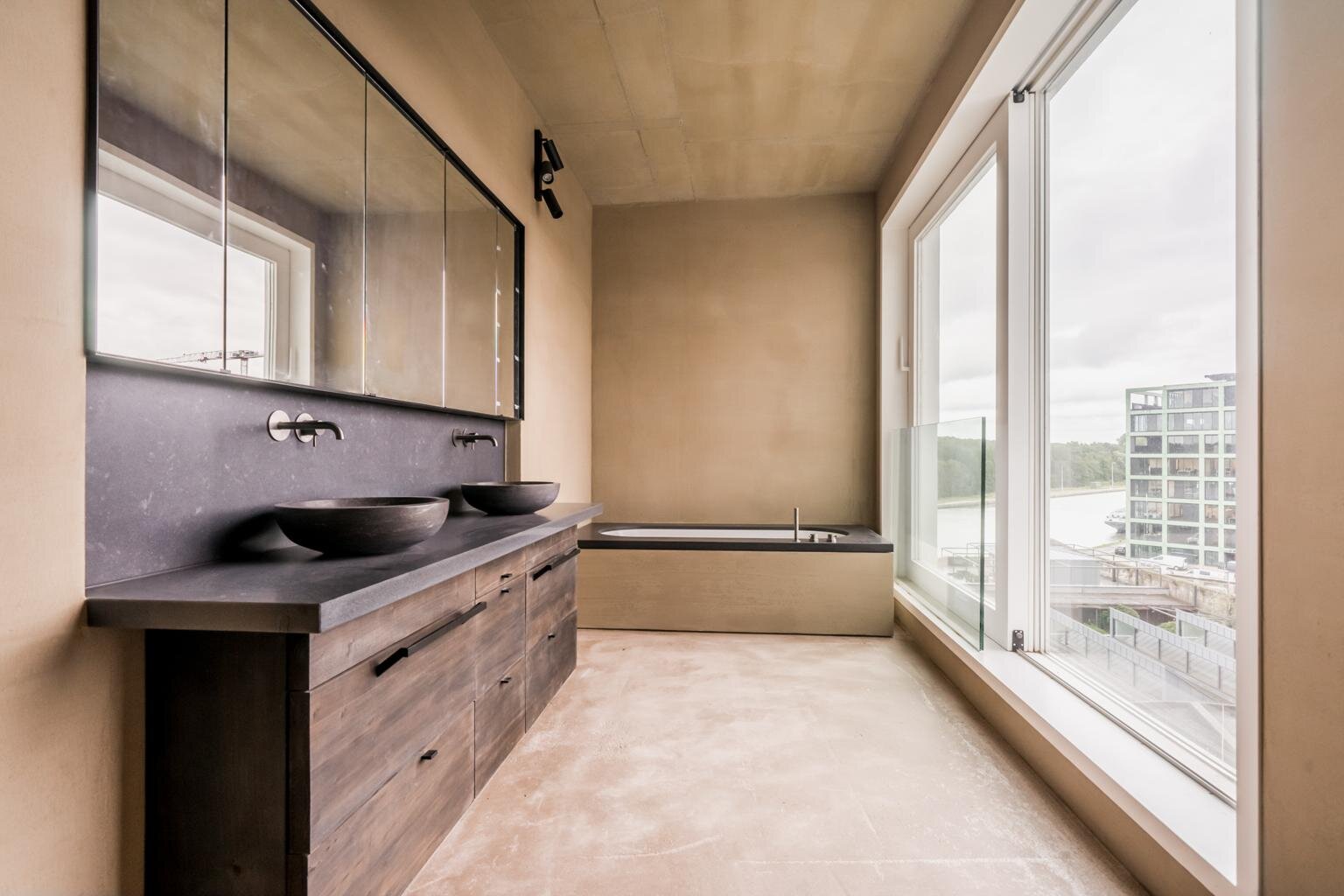 Depuis le hall d'entrée, on accède à la chambre principale avec, là encore, une vue spectaculaire sur l'eau. Elle est suivie d'un élégant dressing et d'une luxueuse salle de bains avec baignoire et douche. Derrière les espaces de vie se trouve une chambre supplémentaire - ici aussi vous pouvez profiter de ces vues magnifiques - avec une deuxième salle de bain adjacente.